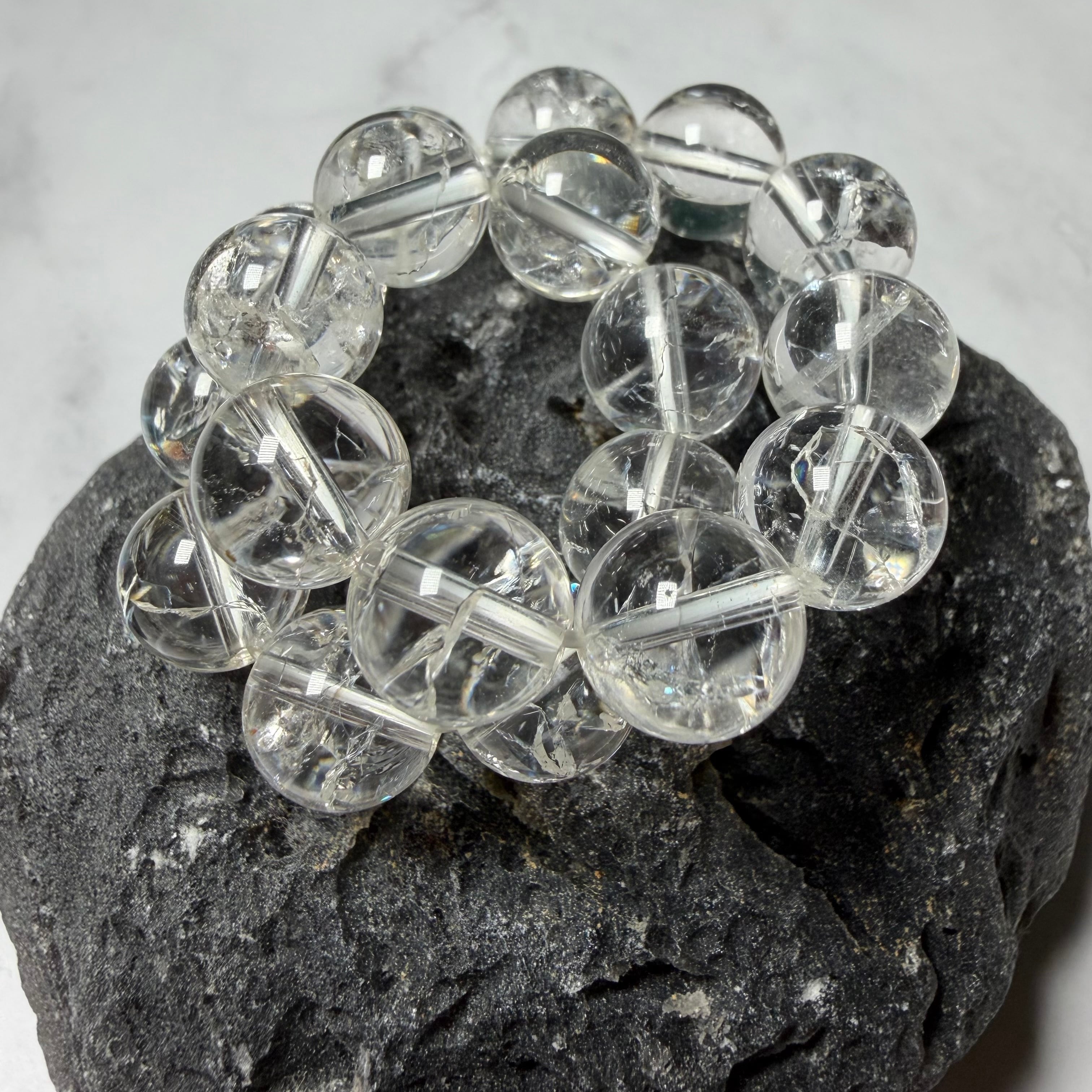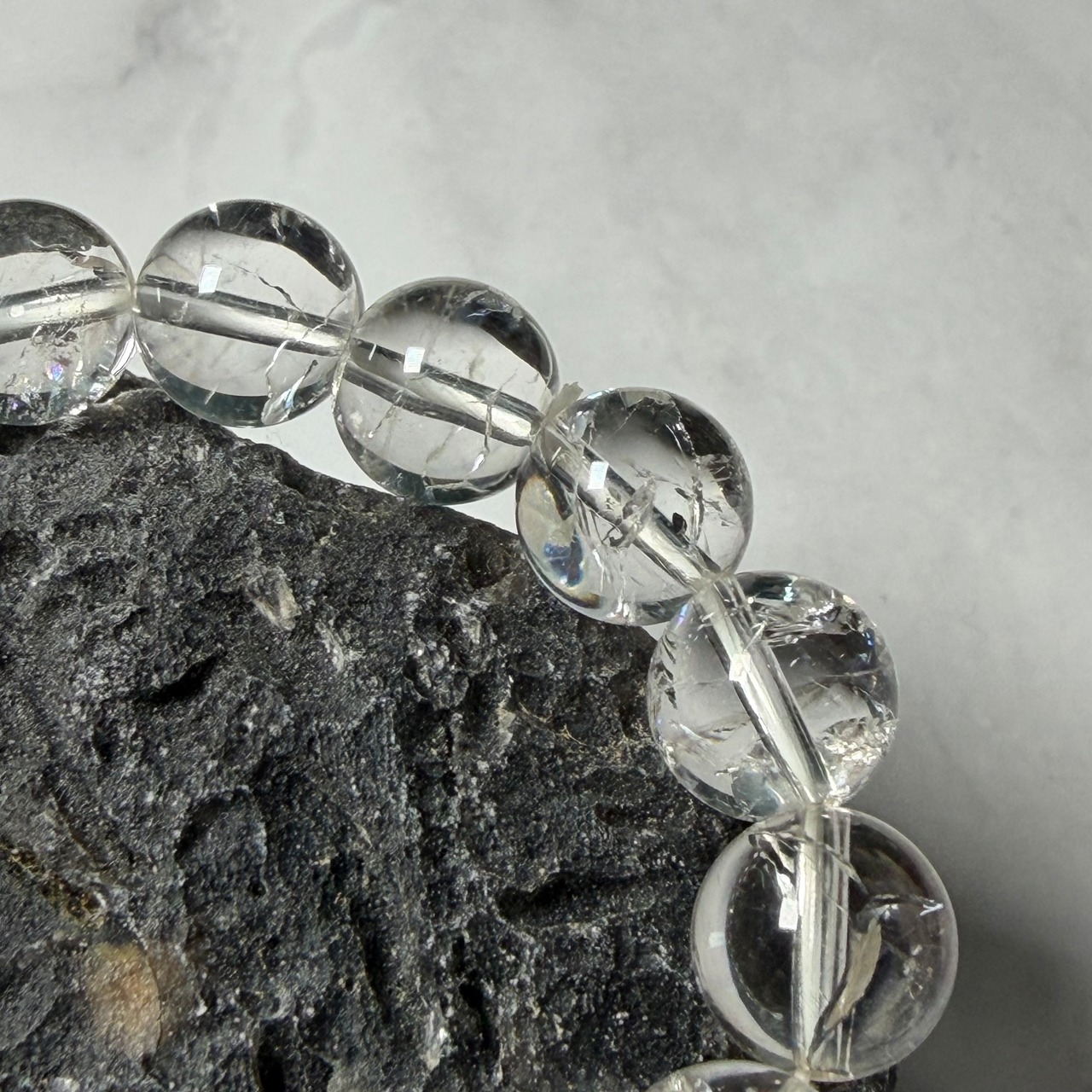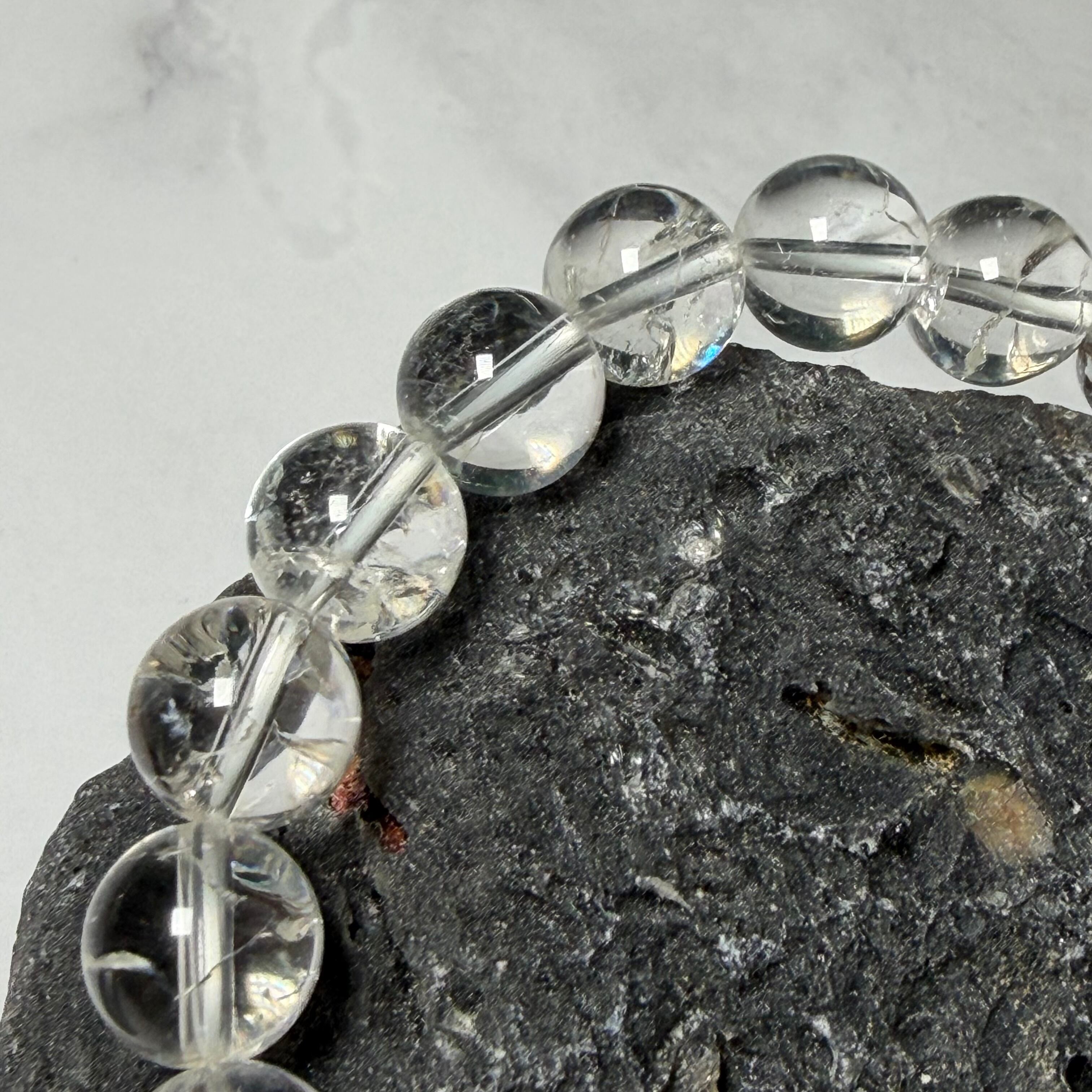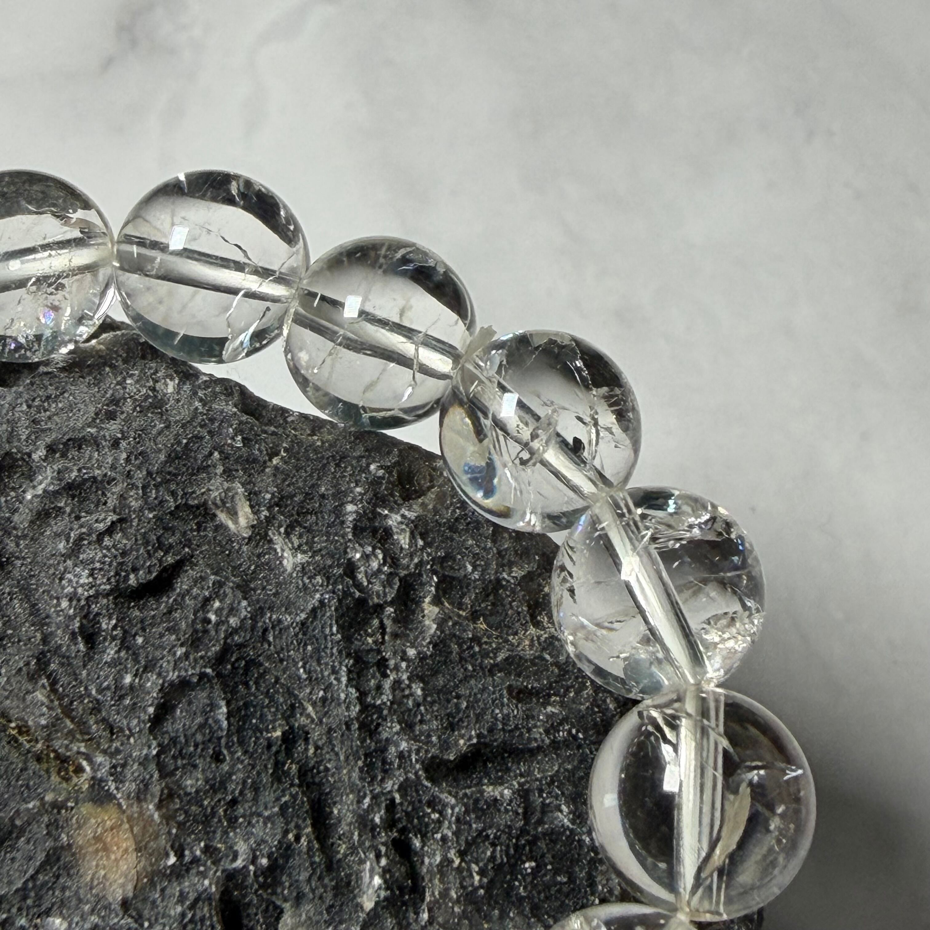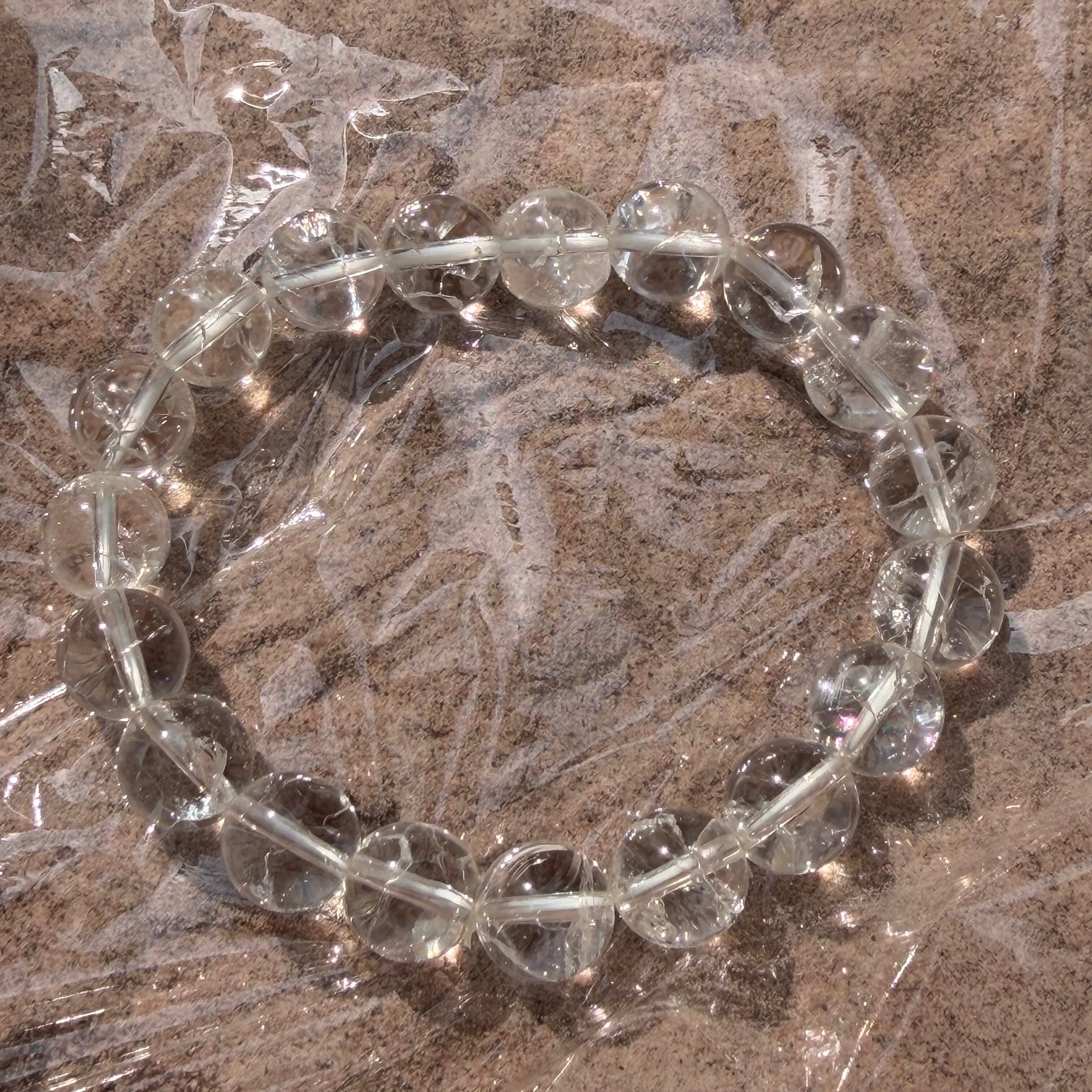 爆裂水晶 クラック水晶 ブレスレット 約10㎜ レインボー 開運 浄化