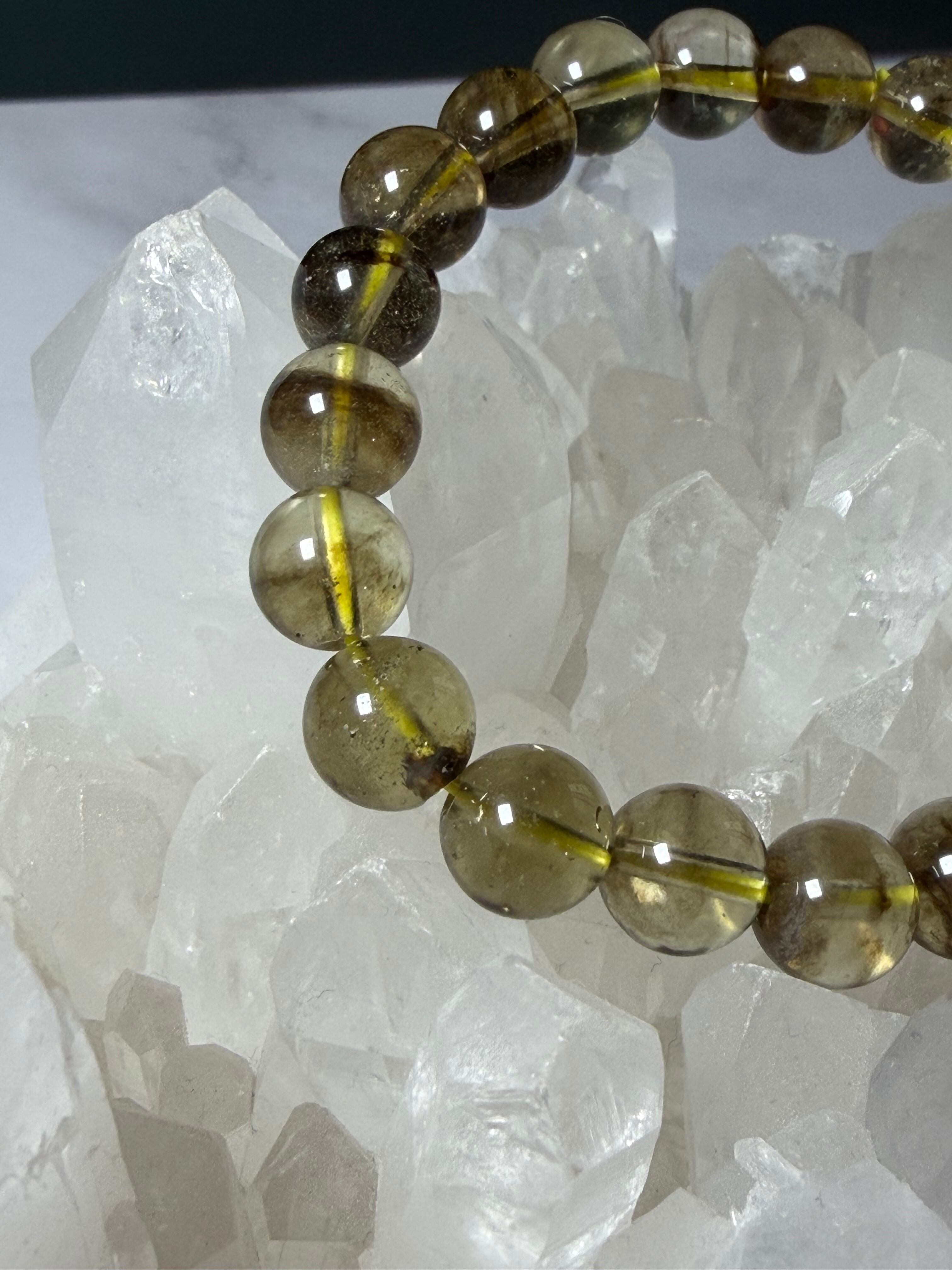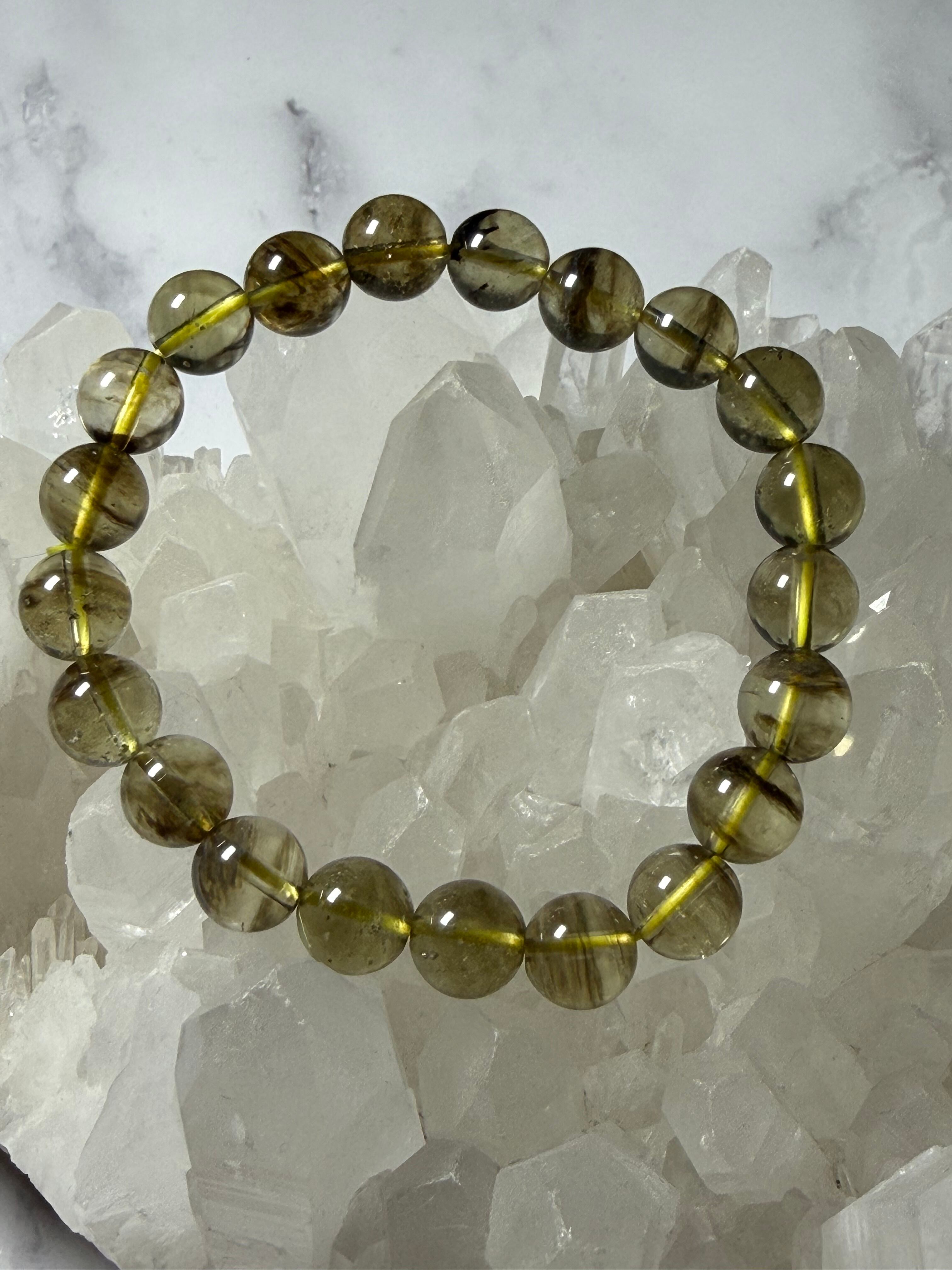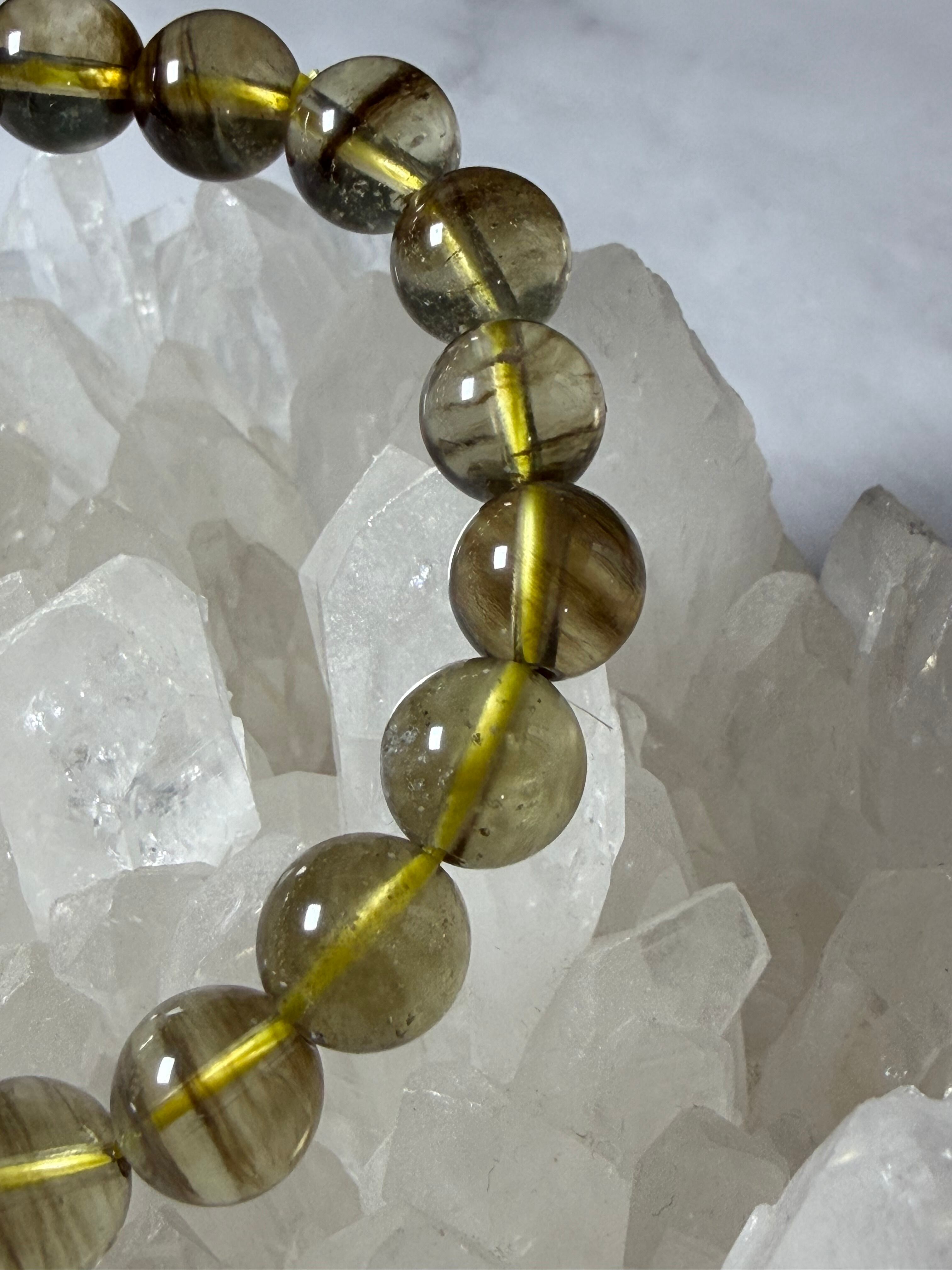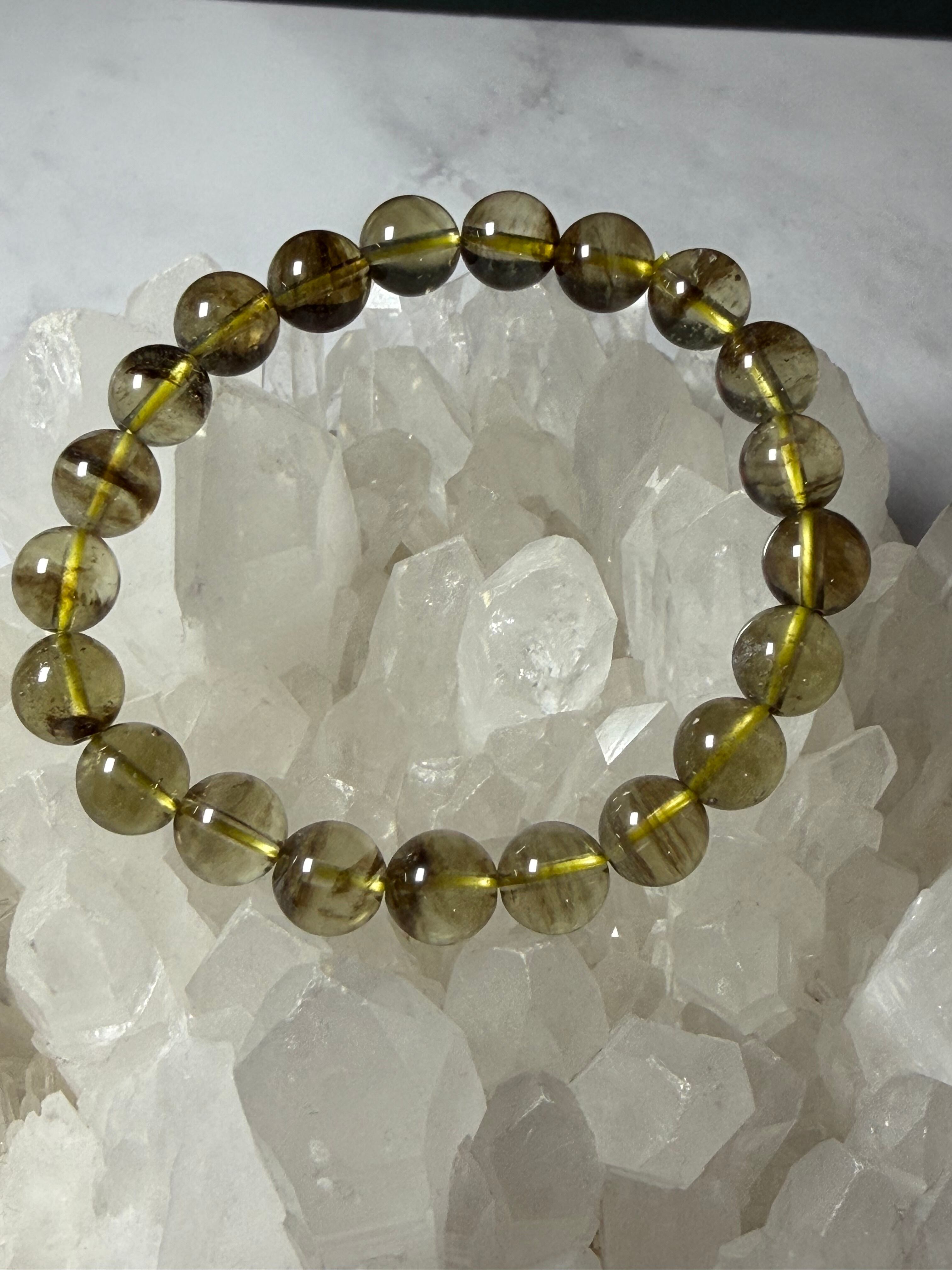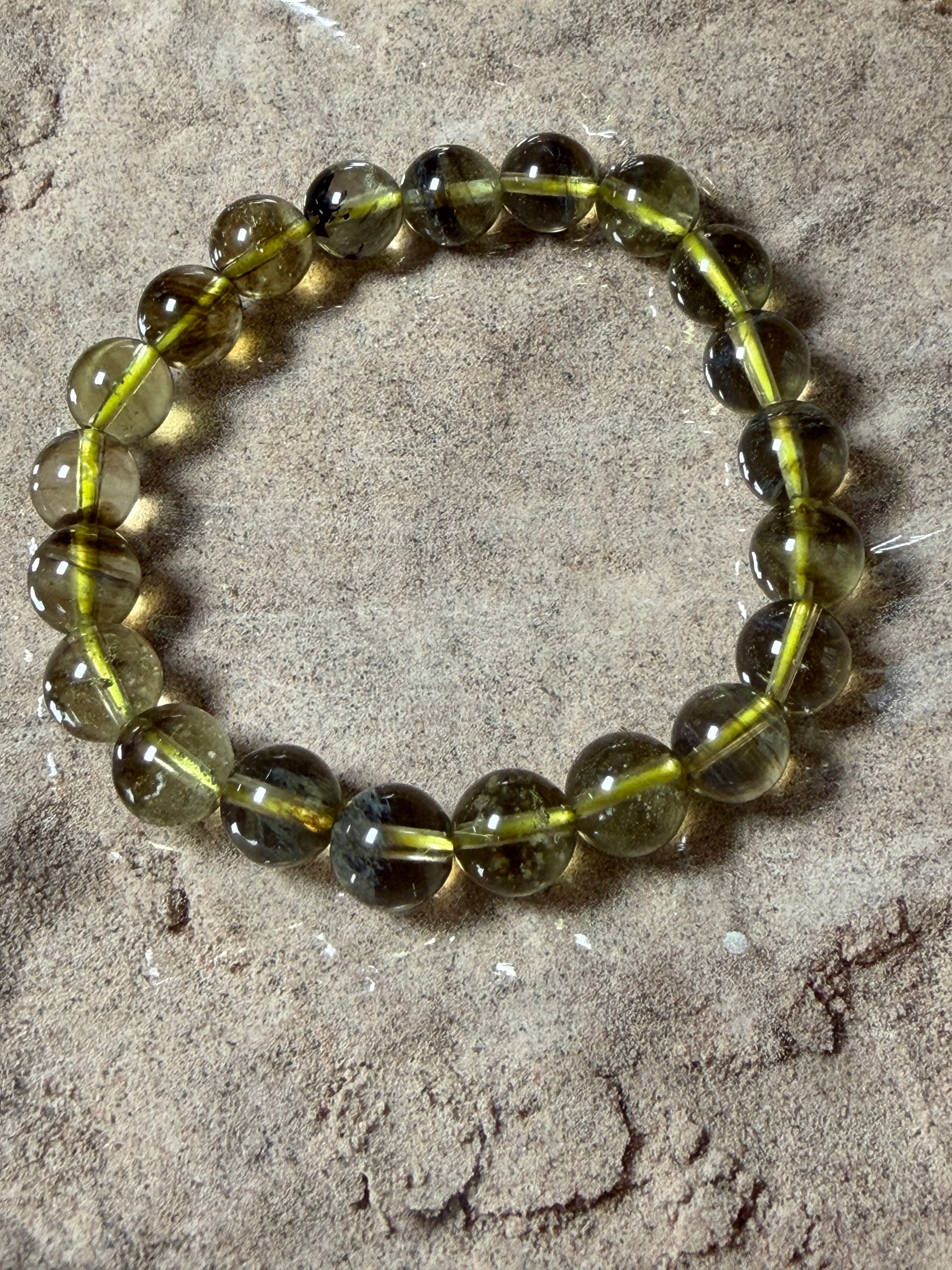 ブラックリビアングラス 天然石ブレスレット 約9.3mm 宇宙 超希少 カルマ浄化