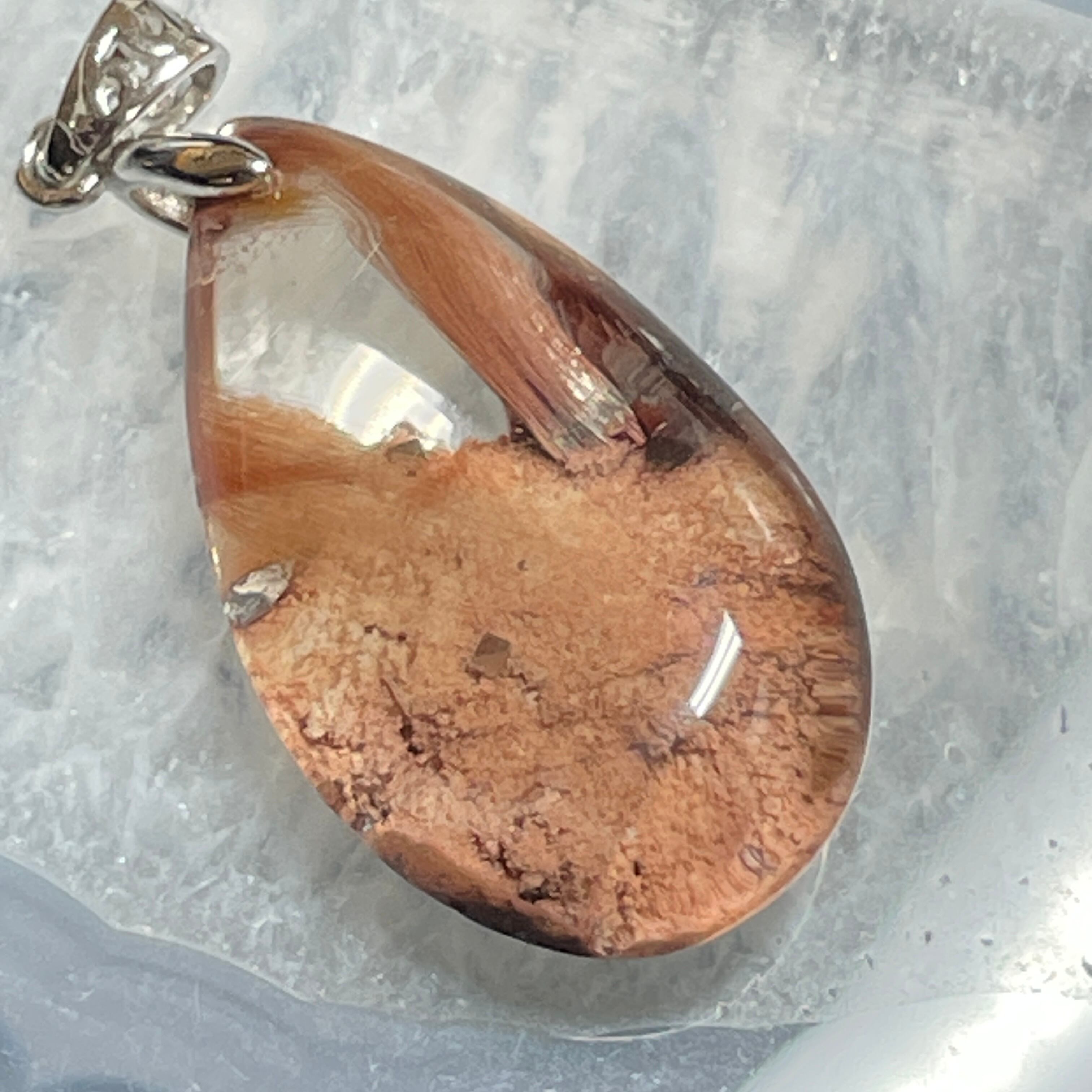 水晶がとてもクリアなので、中で共生している、ルチルとガーデンが綺麗に見えます。