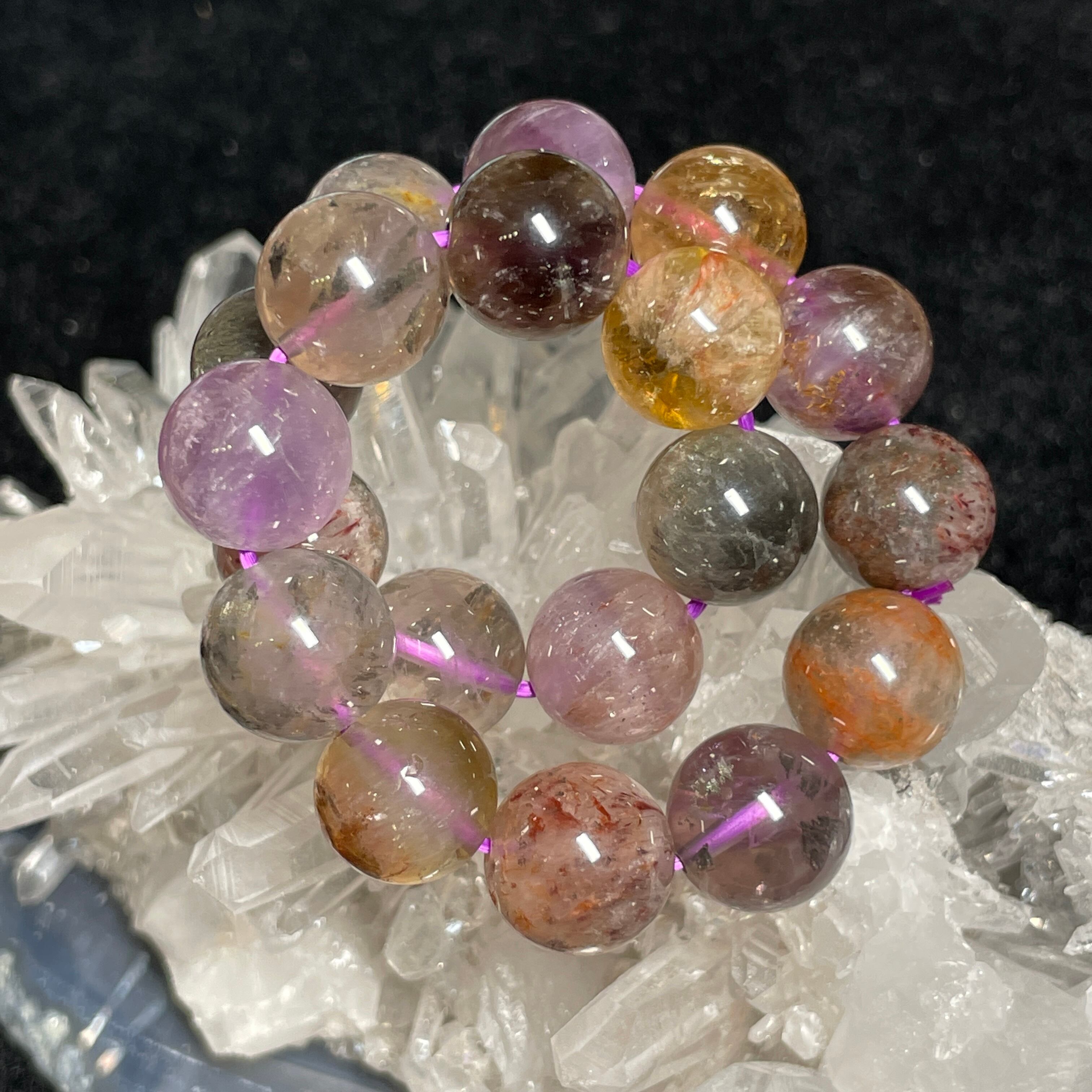 母体となっているアメジスト(紫水晶)に23種の鉱物が少量ずつ混じり合っている天然石です。
