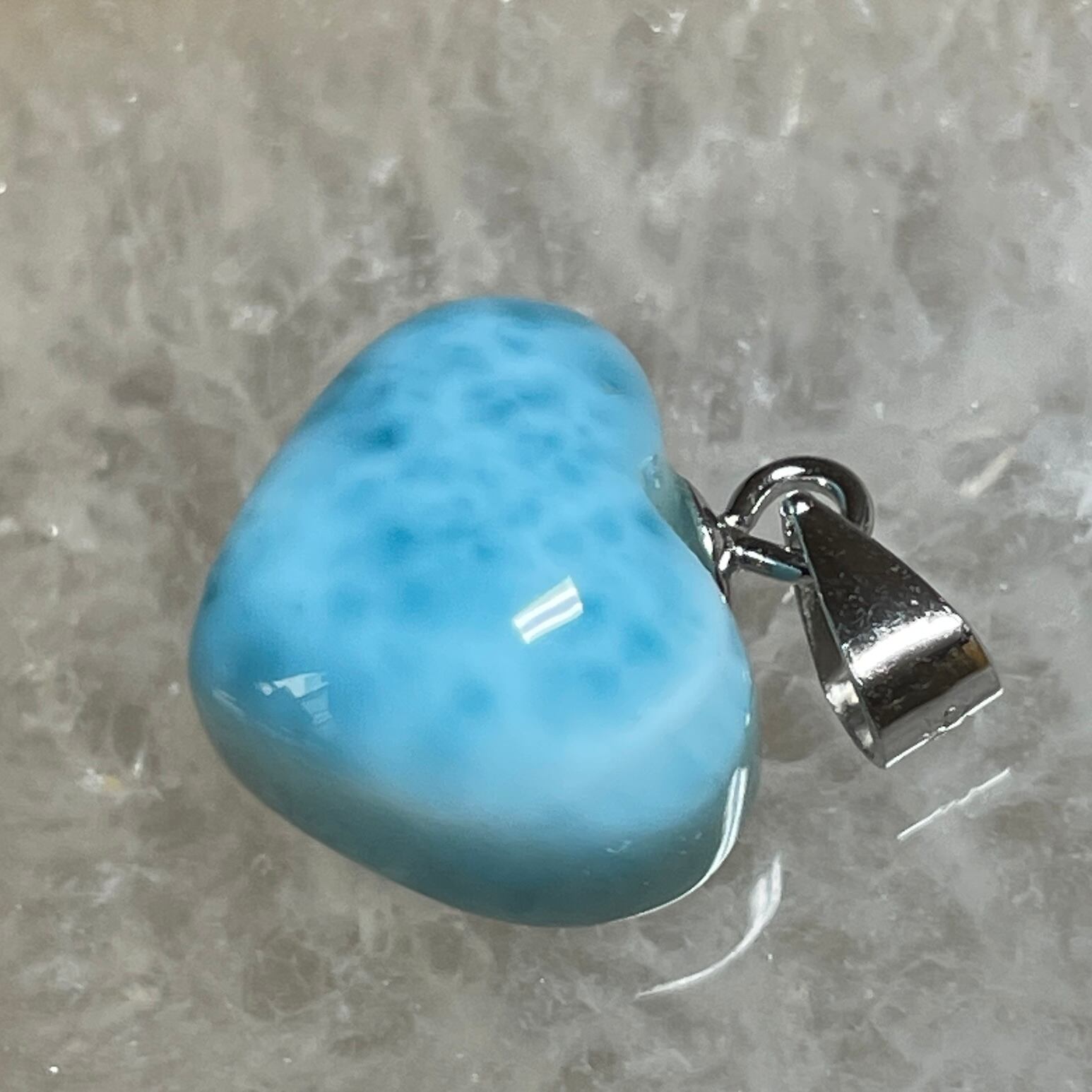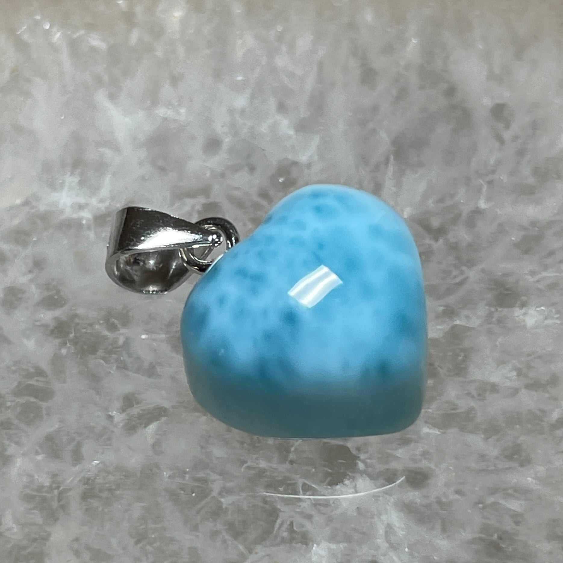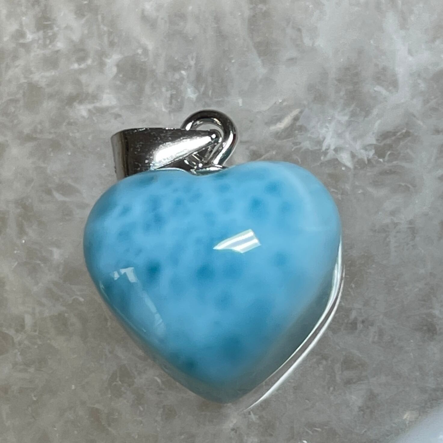 世界三大ヒーリングストーンの1つのラリマーのハート型ペンダントトップです。
