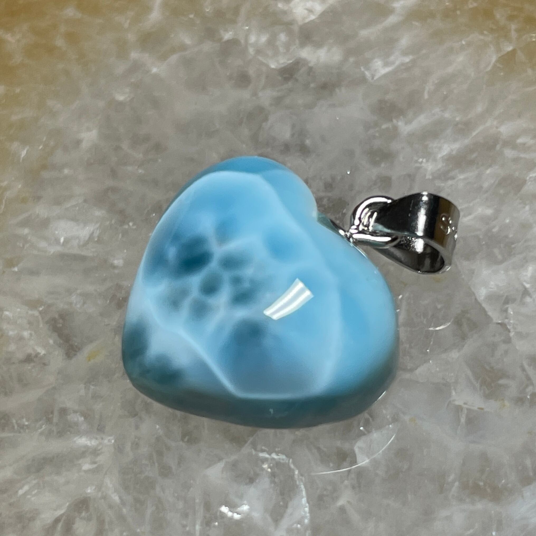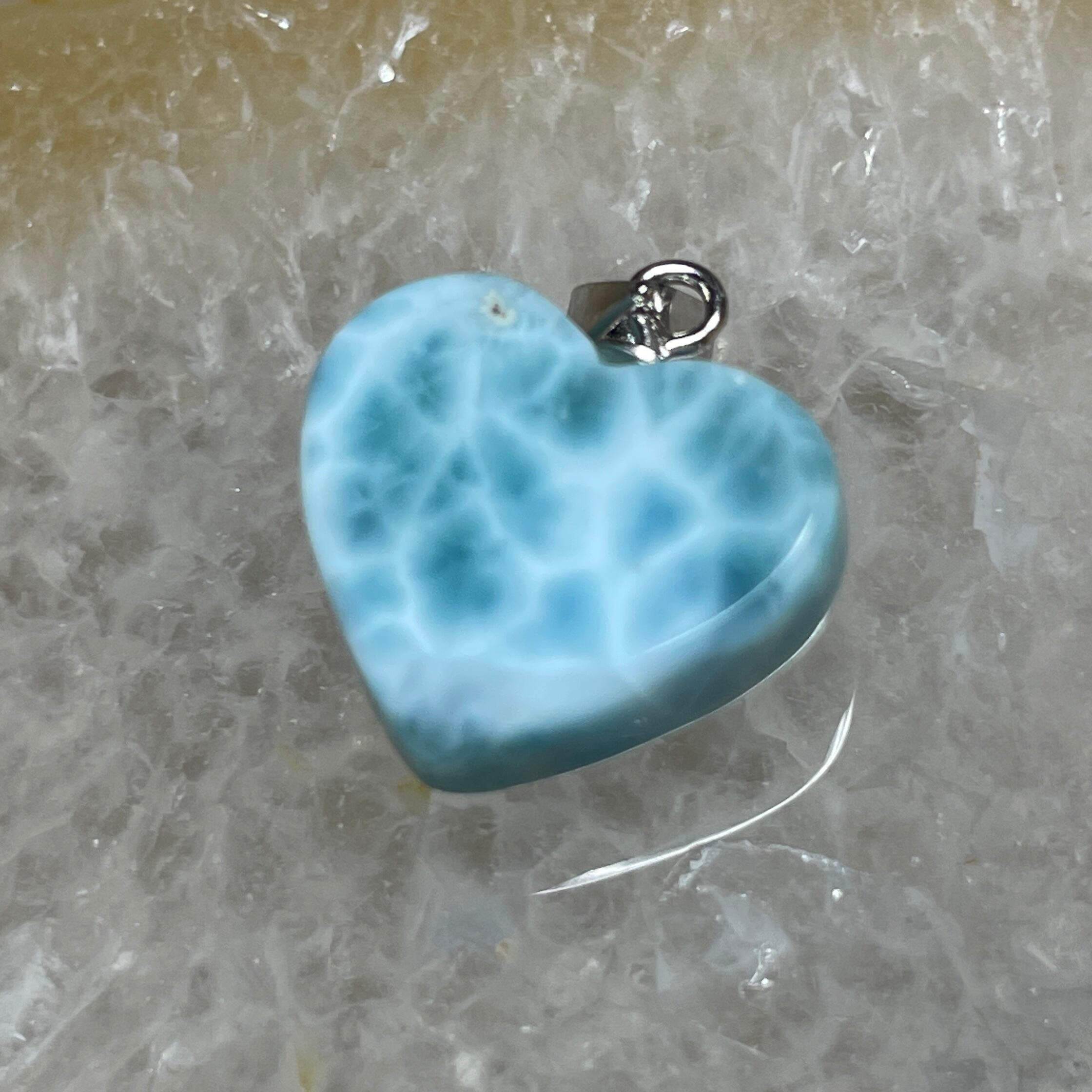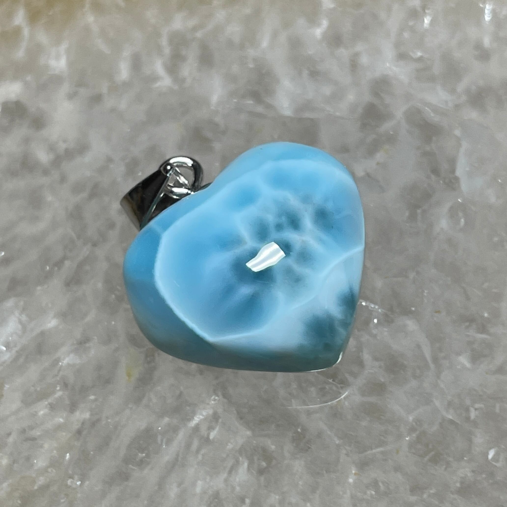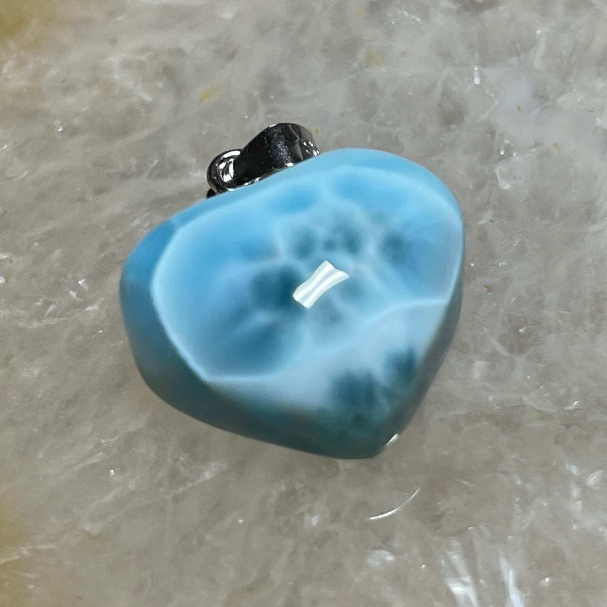 世界三大ヒーリングストーンの1つのラリマーのハート型ペンダントトップです。