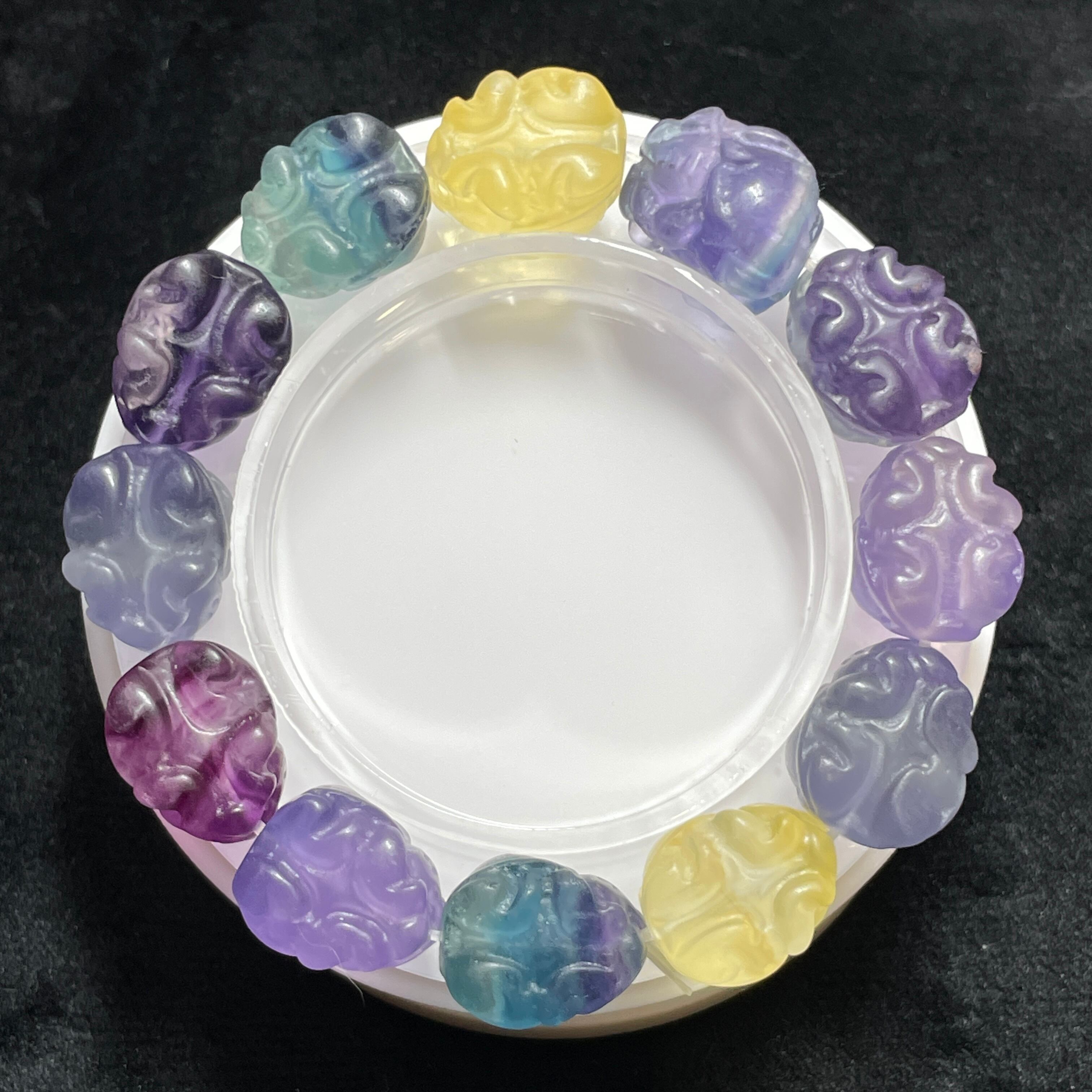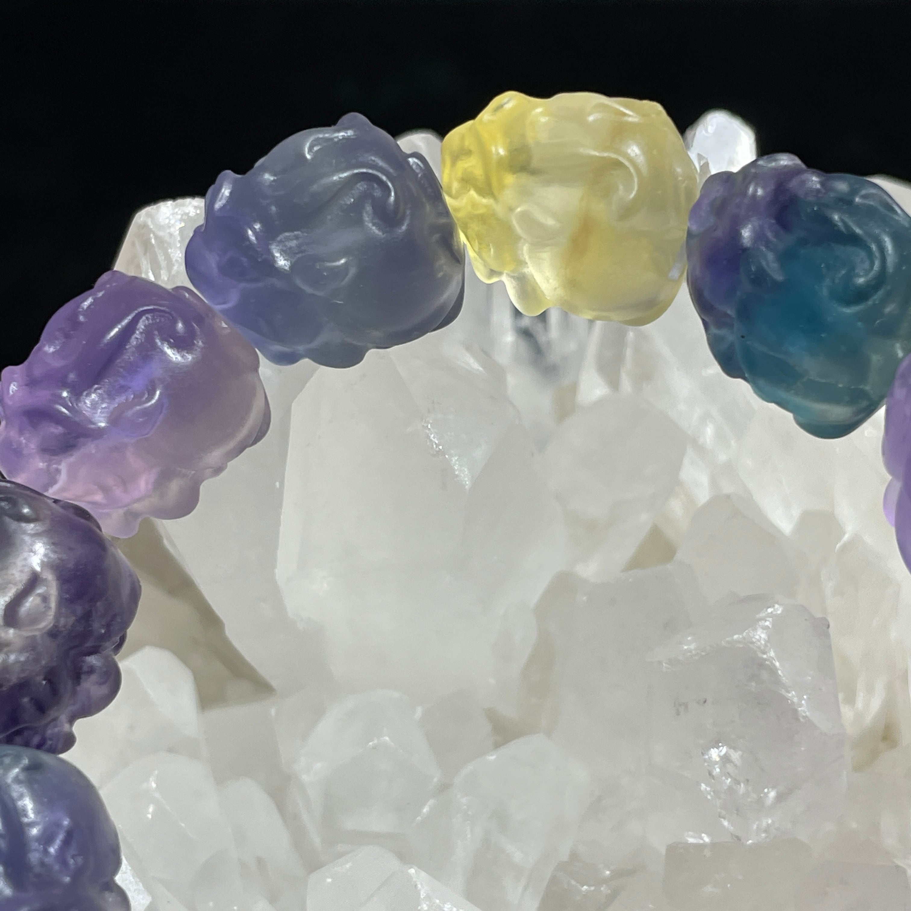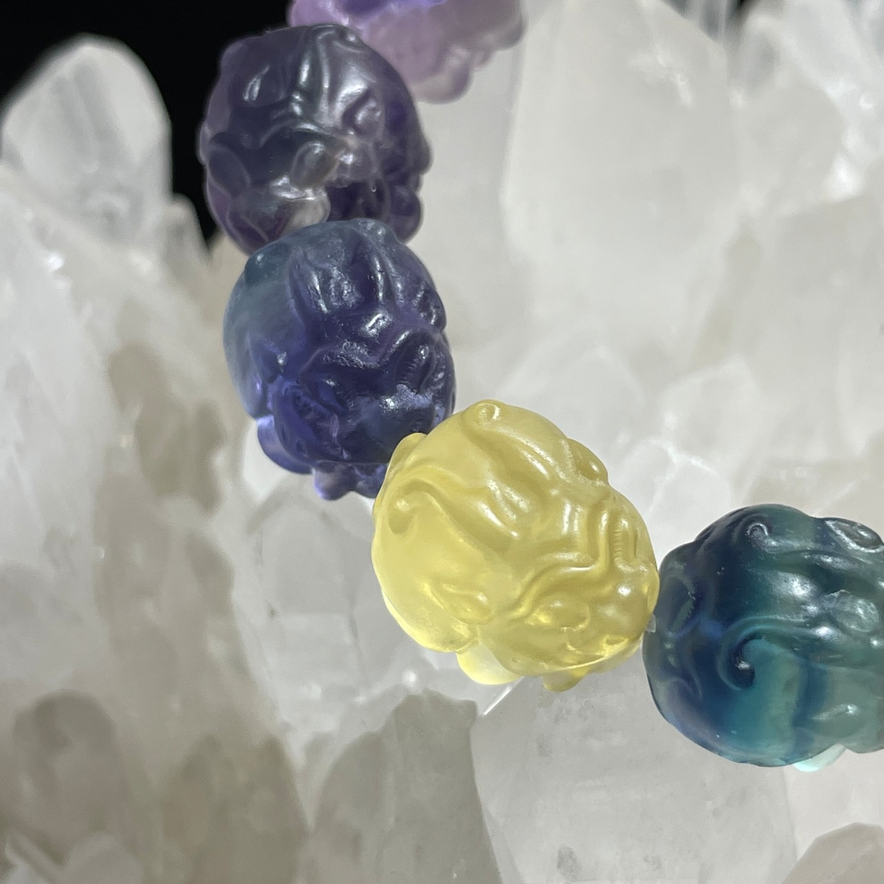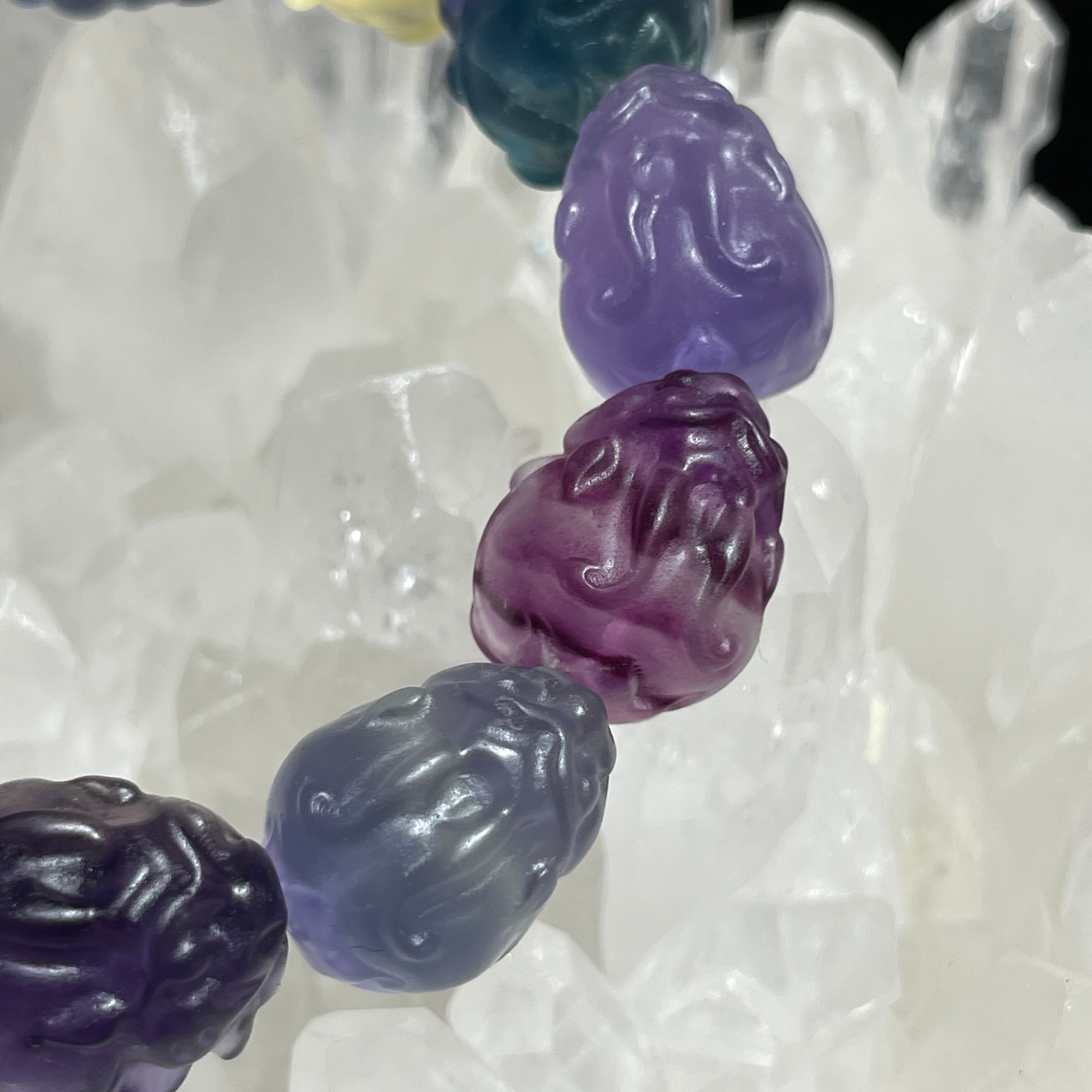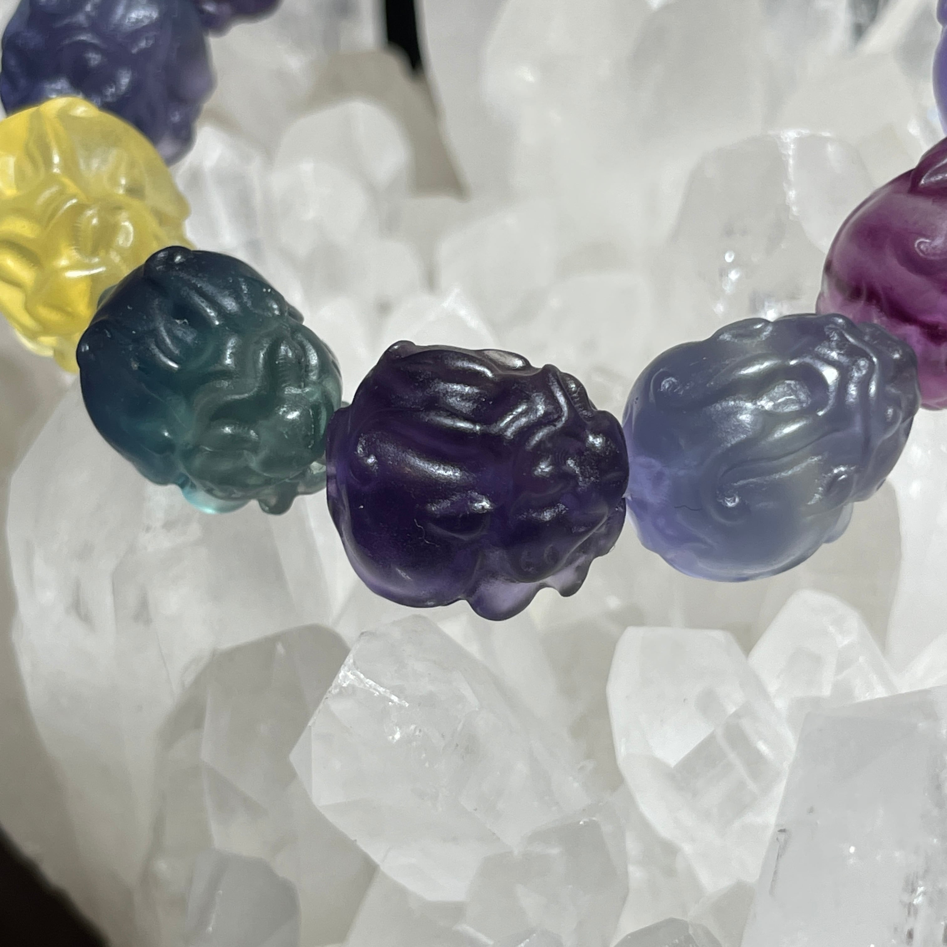 フローライトで作られた龍亀の手掘りのブレスレットです。