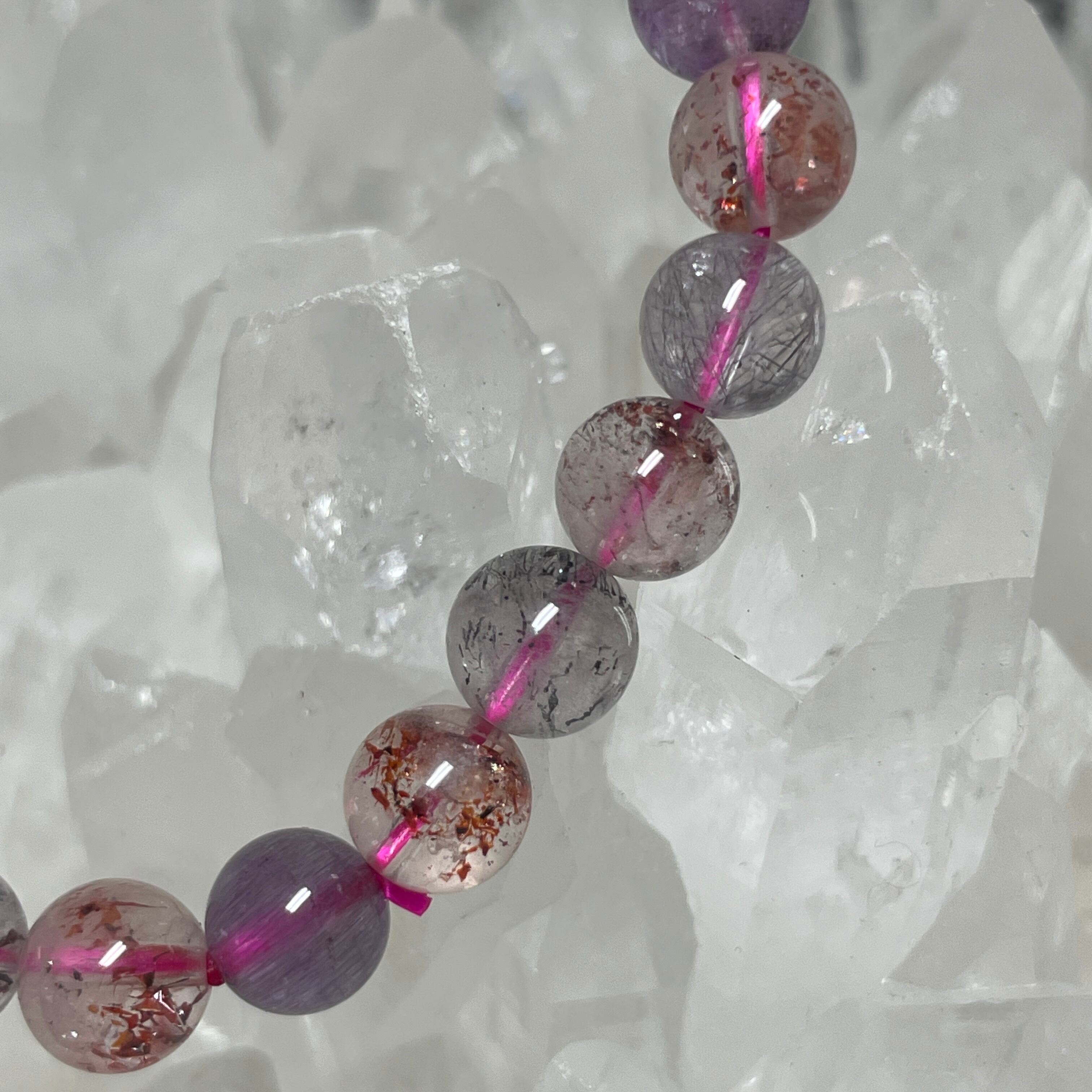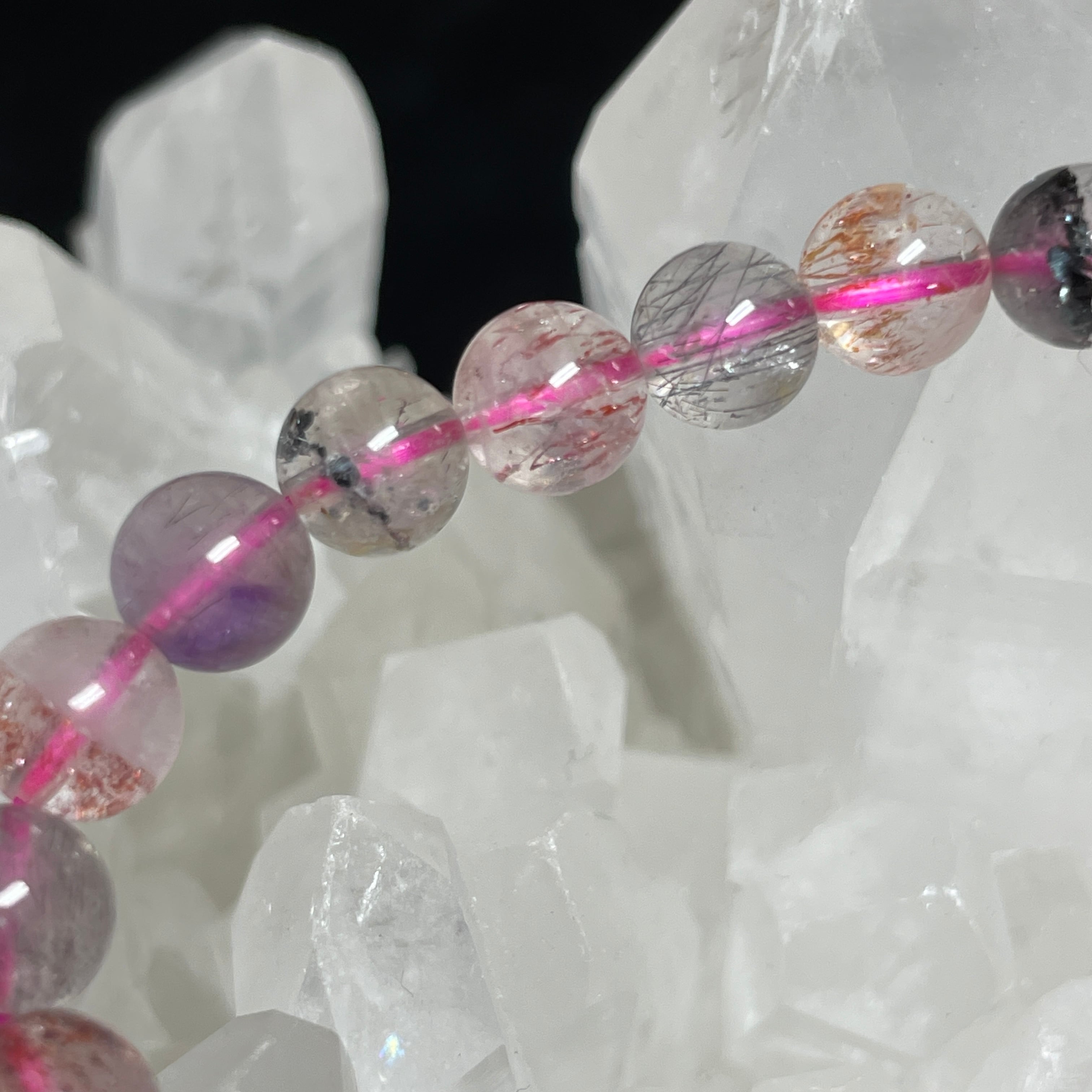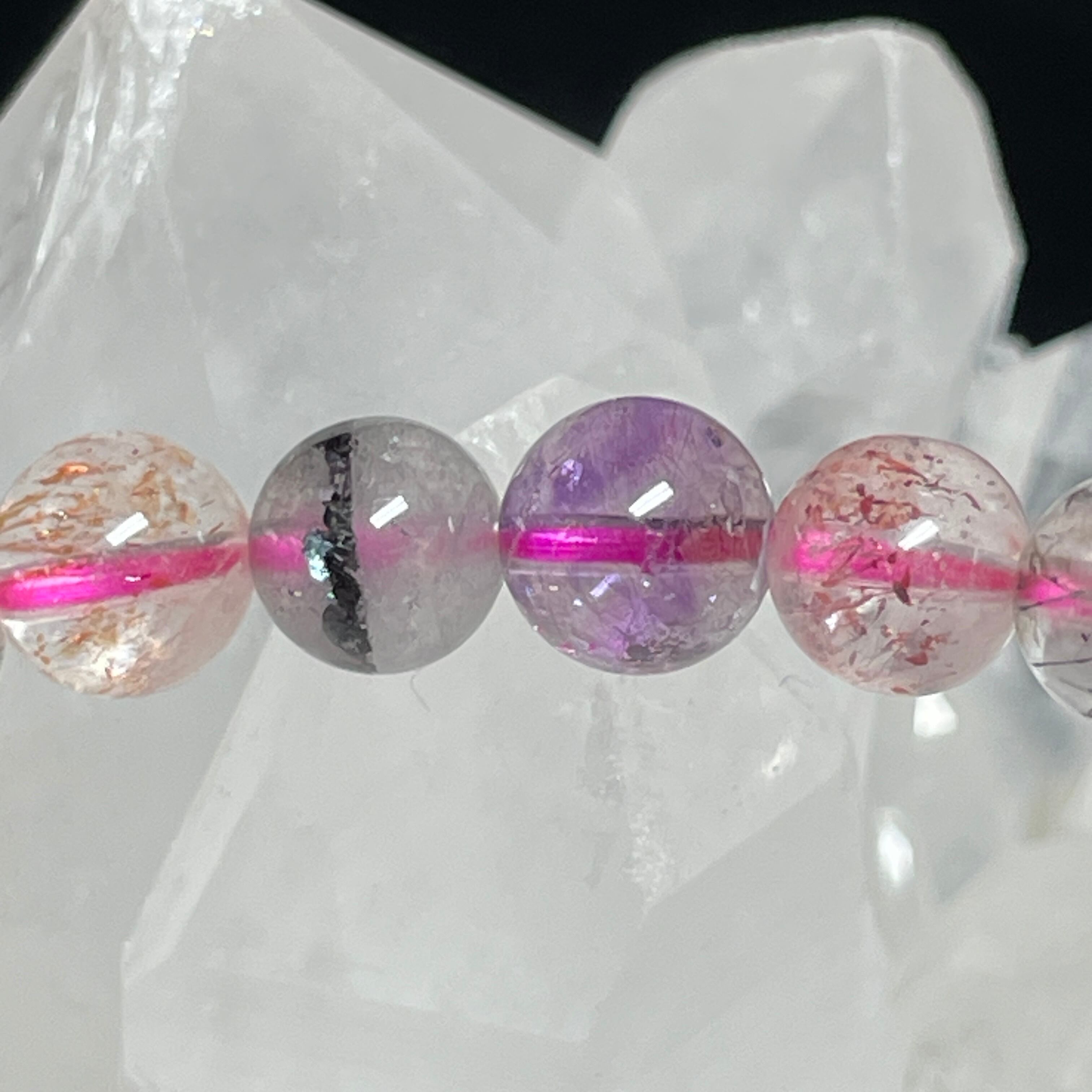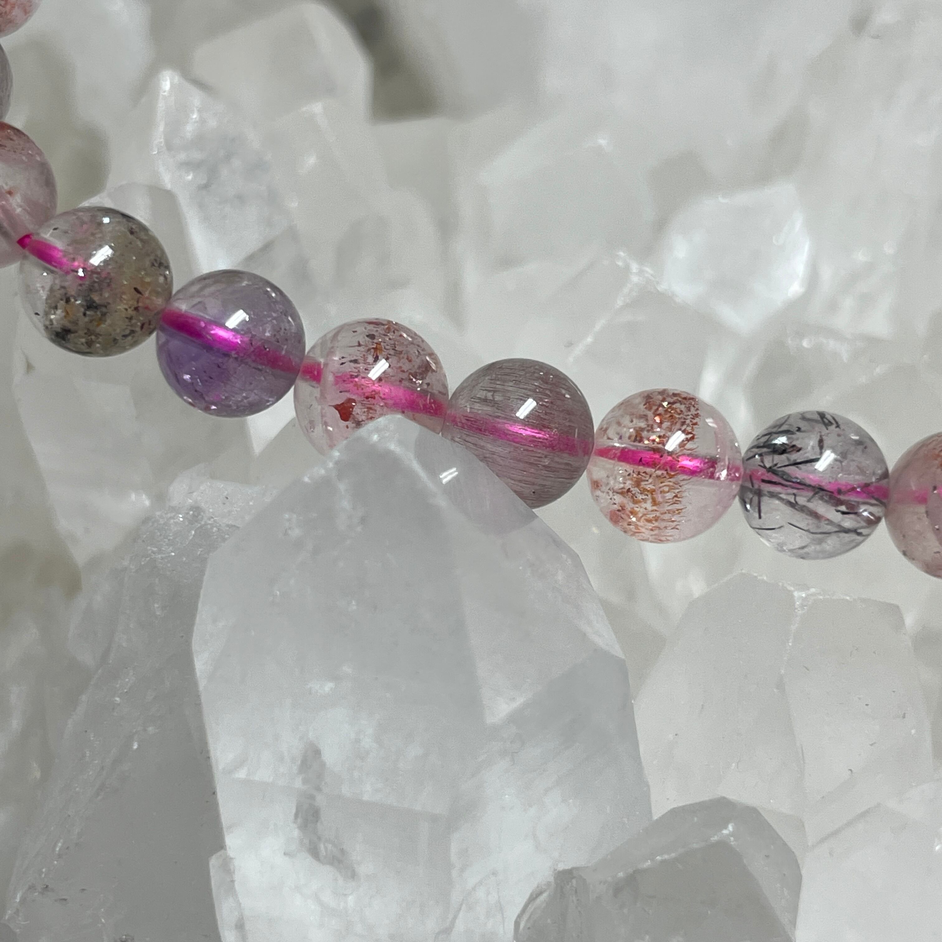水晶、アメジスト、カコクセナイト、ゲーサイト、スモーキークォーツ、ルチル、レビドクロサイトの7つの鉱物で構成された強いパワーを持つとされています。