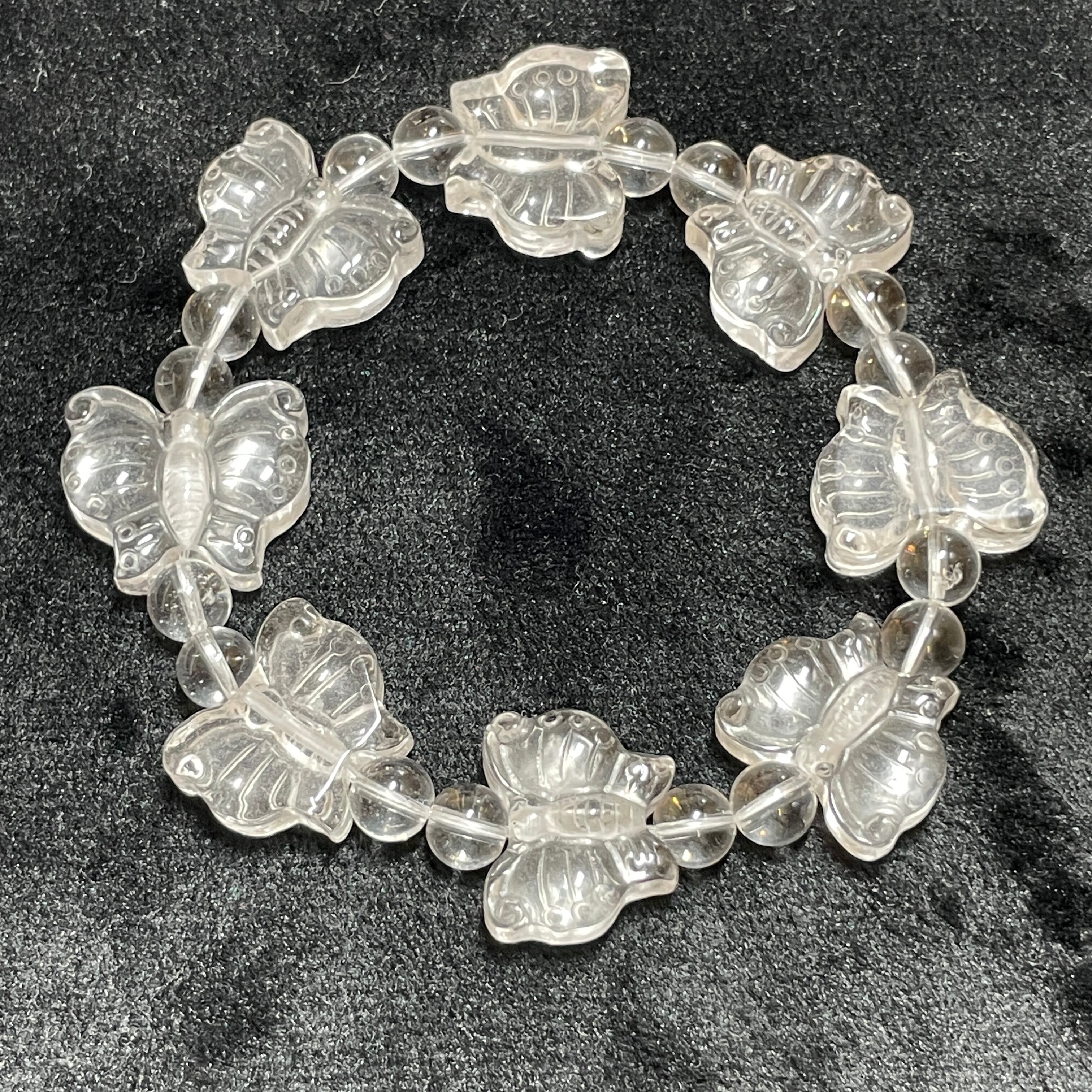 手掘りの水晶蝶々型ブレスレットです。