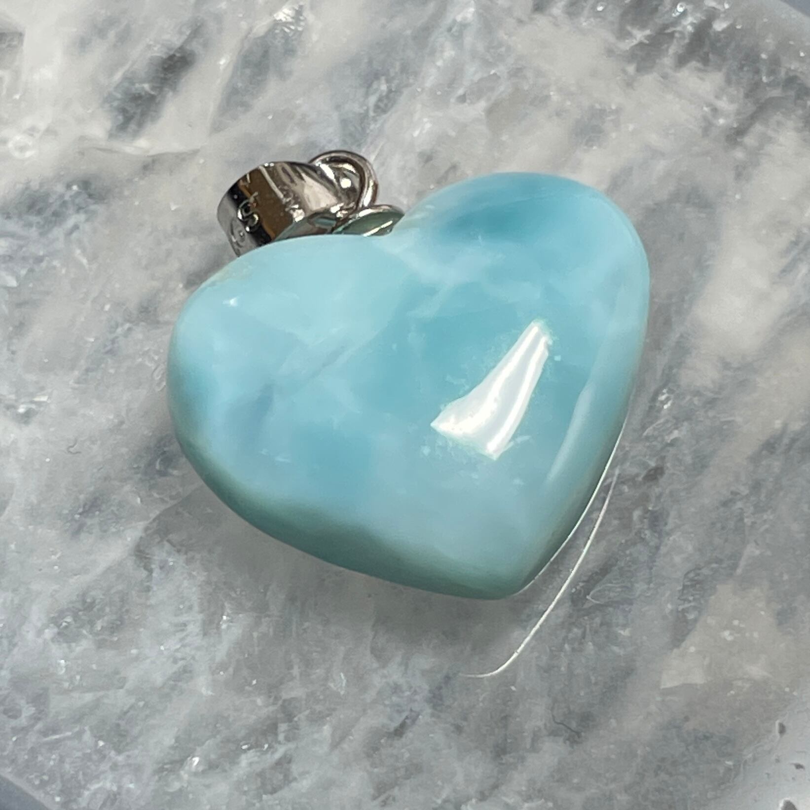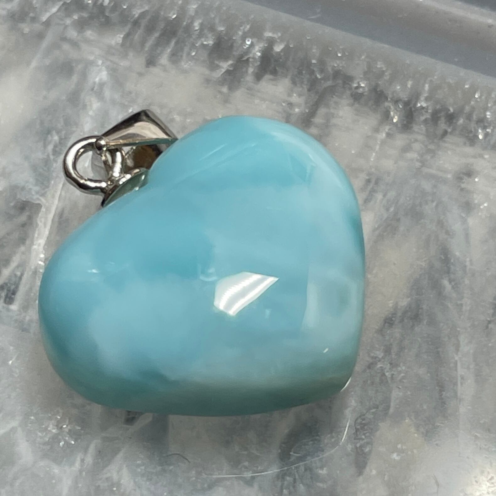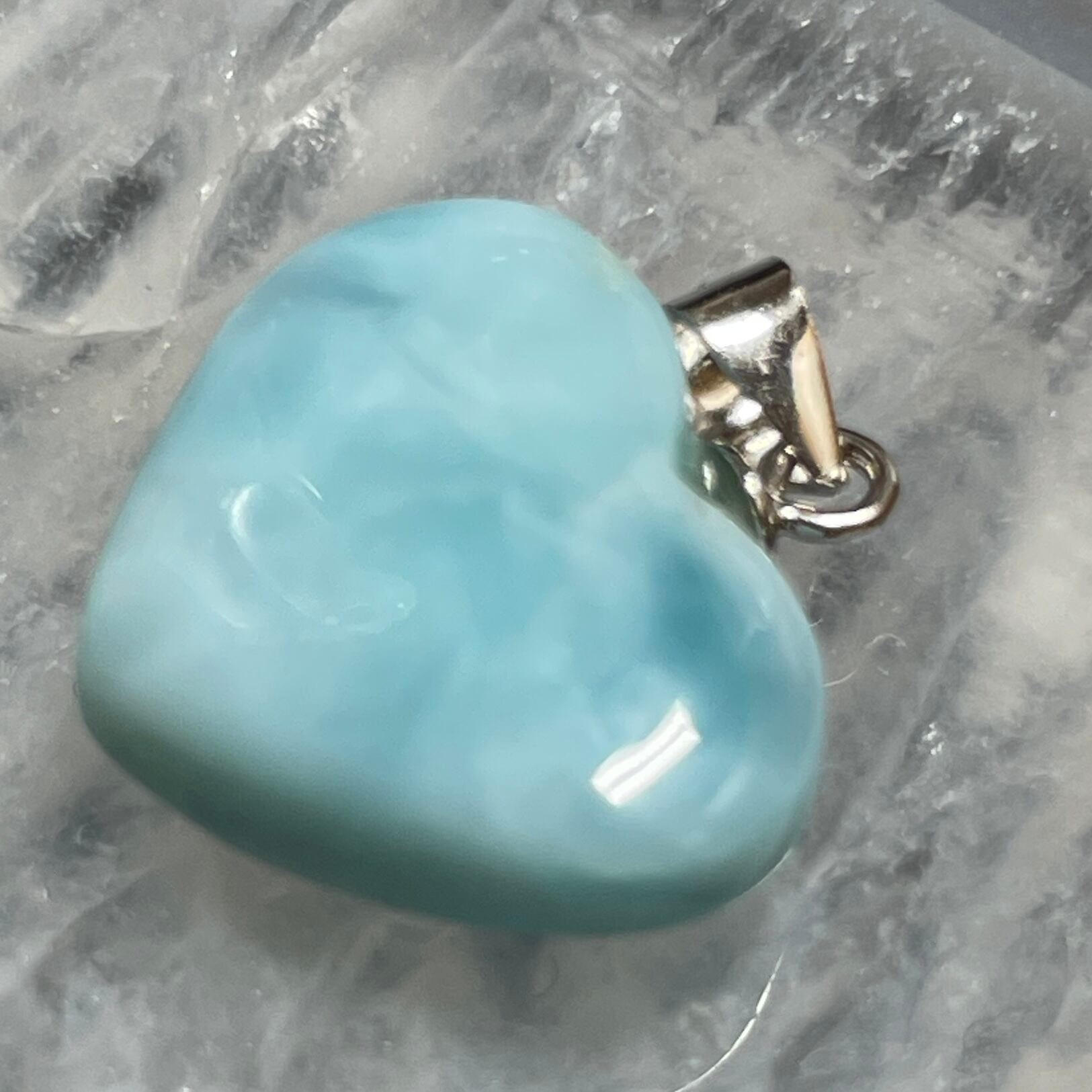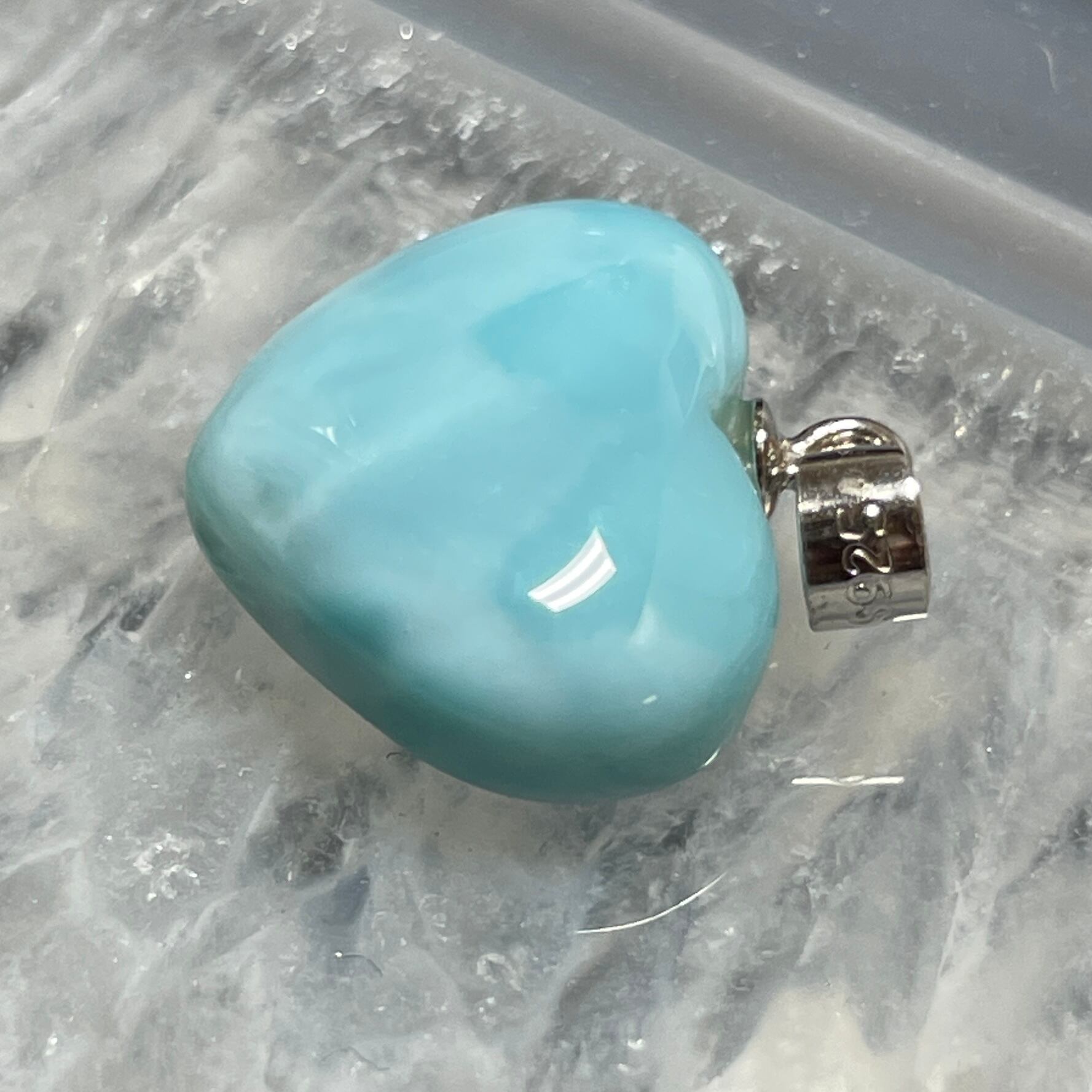 世界三大ヒーリングストーンの1つのラリマーのハート型ペンダントトップです。