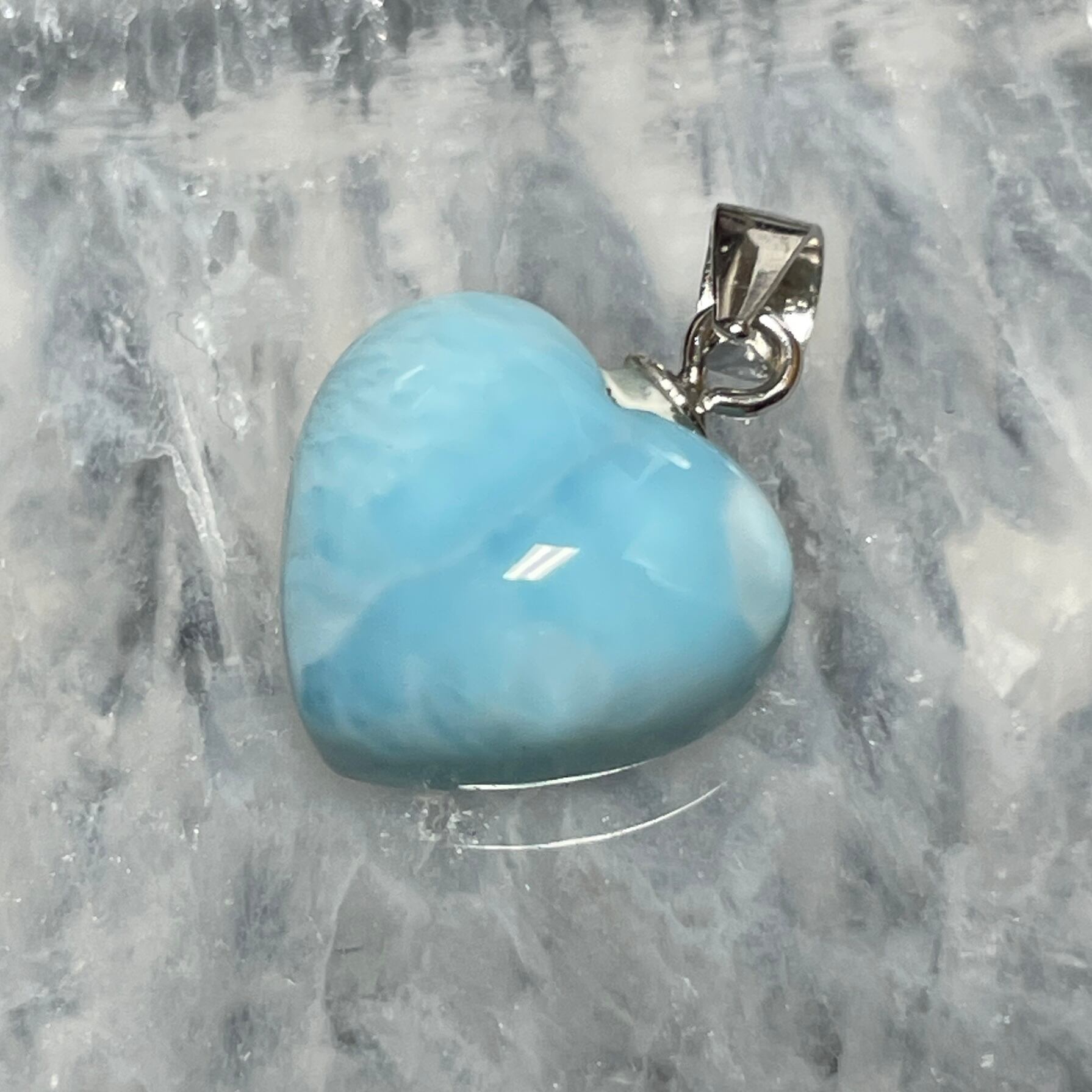世界三大ヒーリングストーンの1つのラリマーのハート型ペンダントトップです。