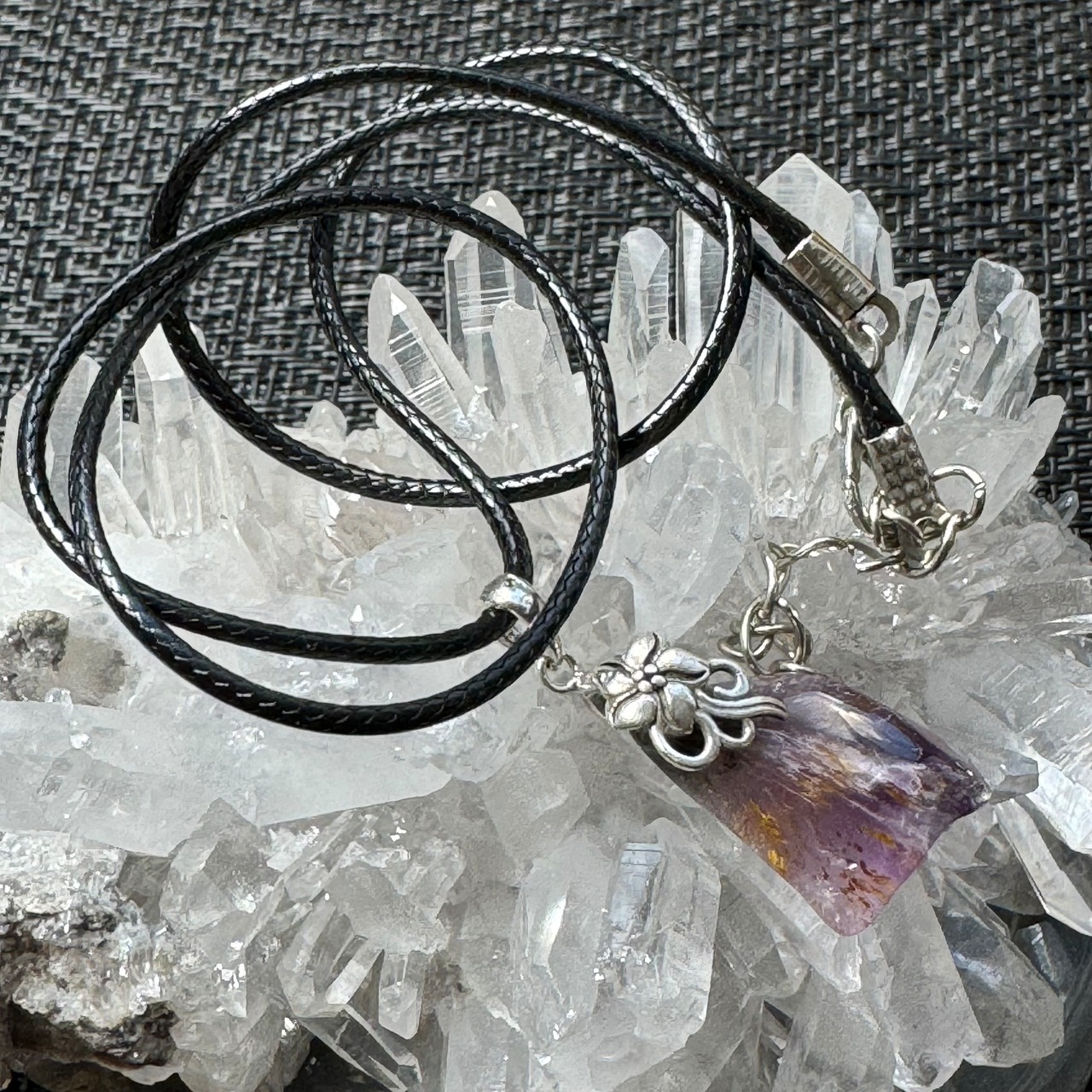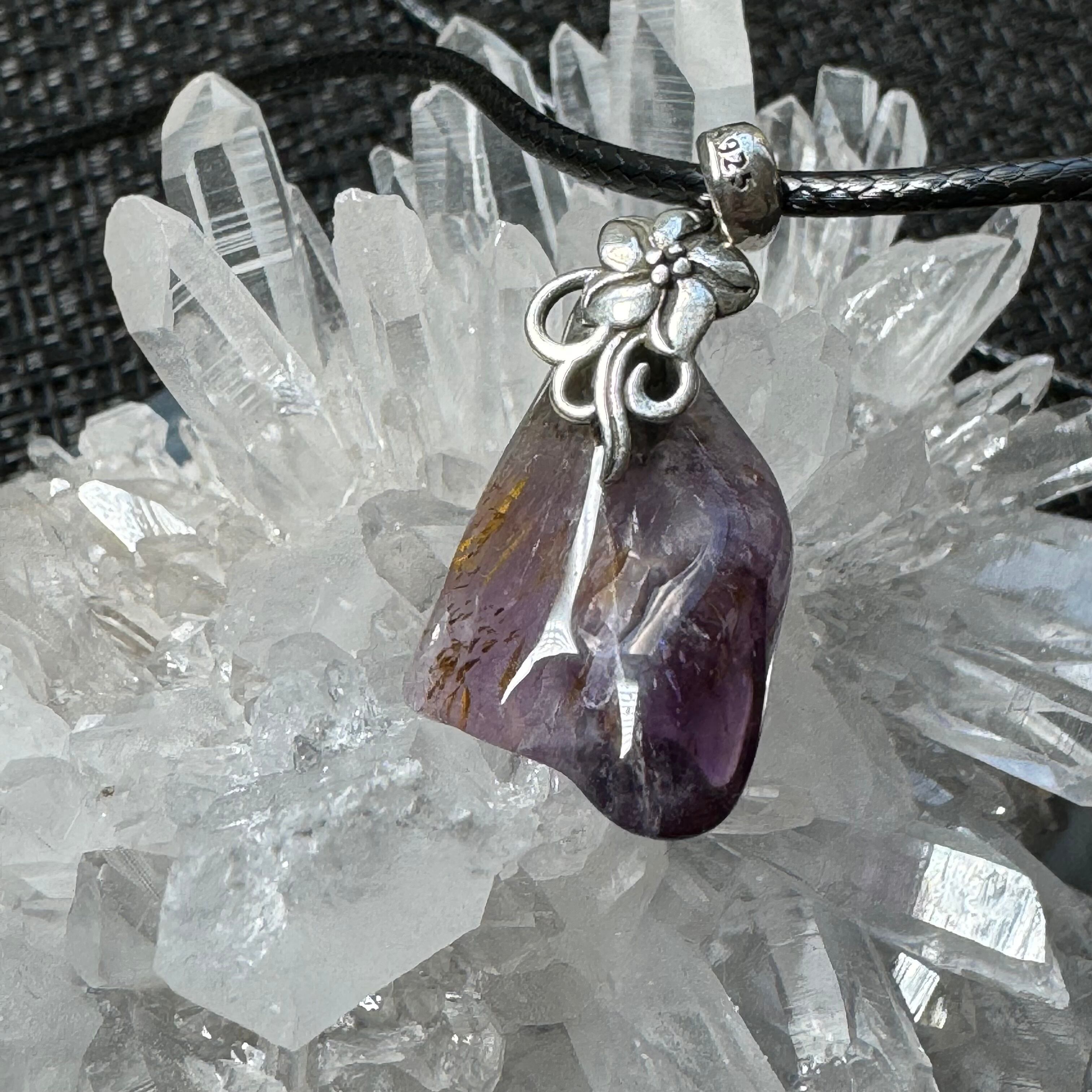 母体となっているアメジスト(紫水晶)に23種の鉱物が少量ずつ混じり合っている天然石です。