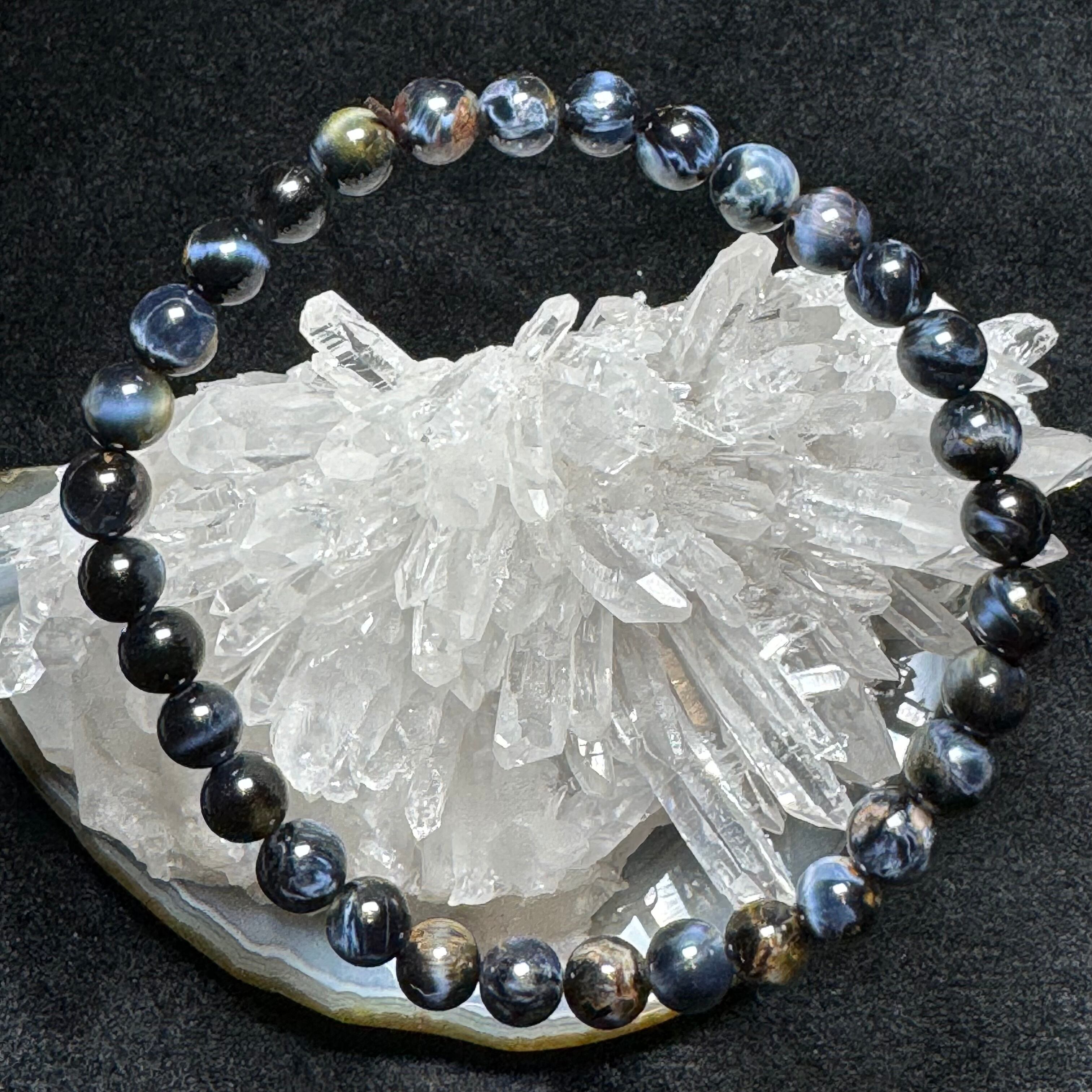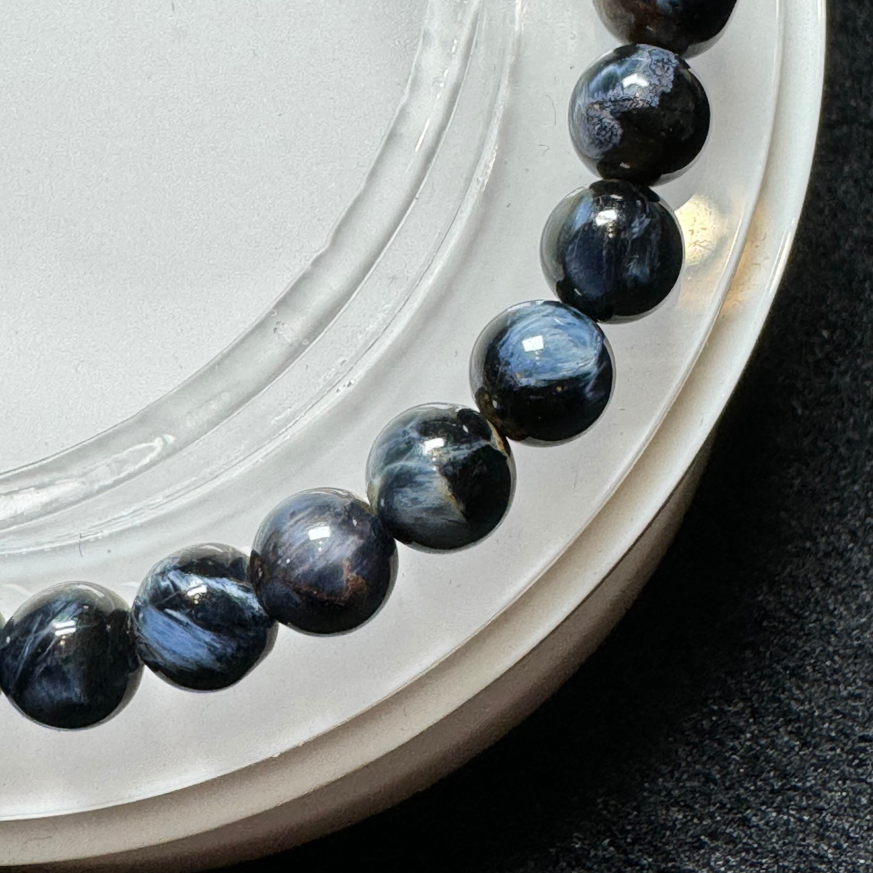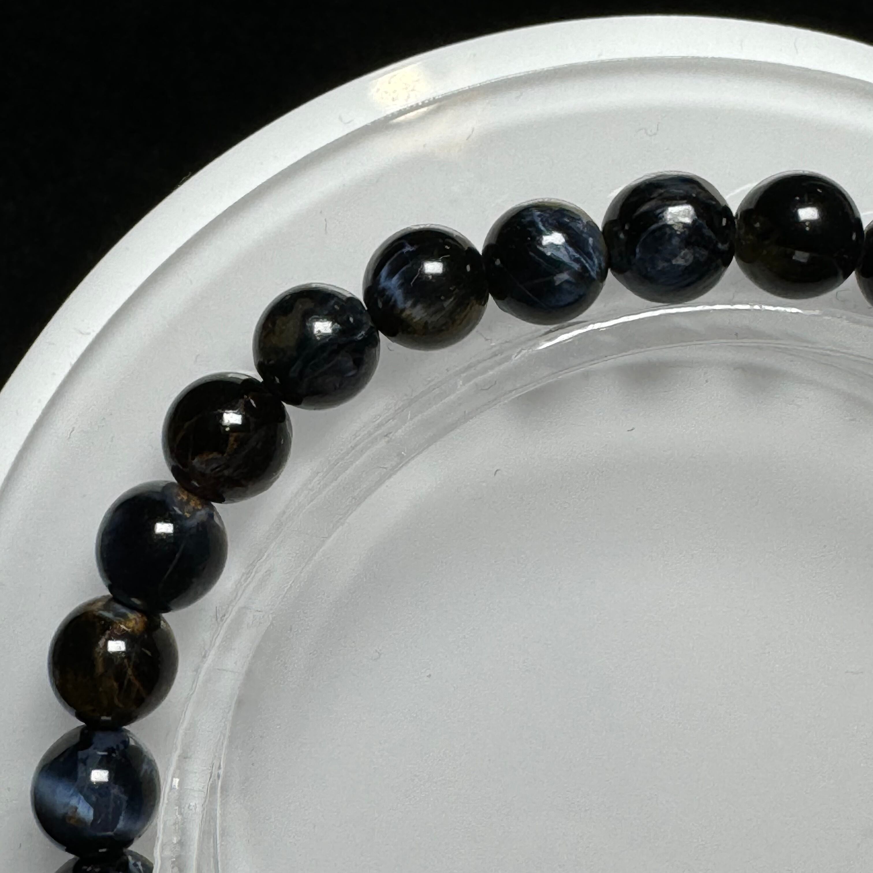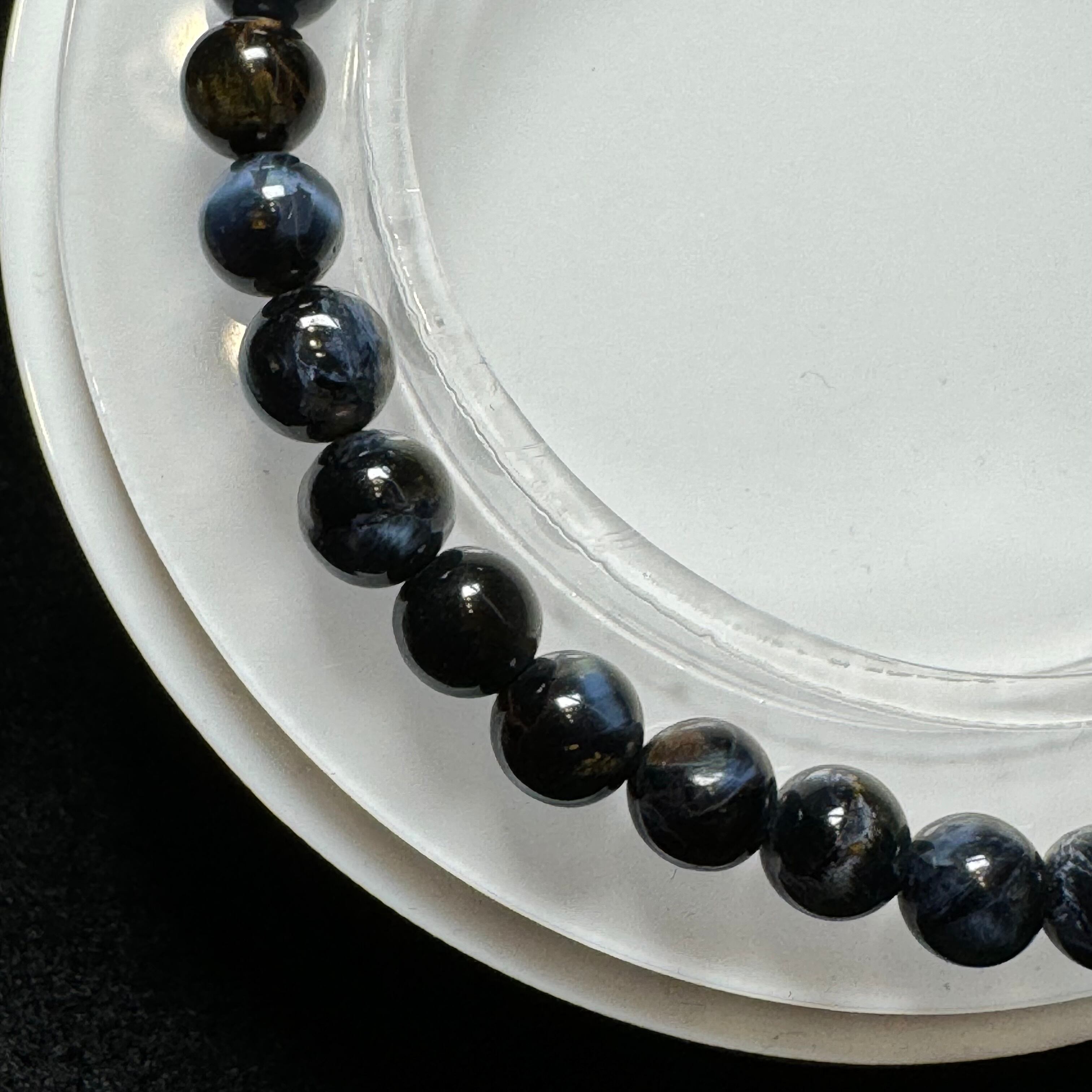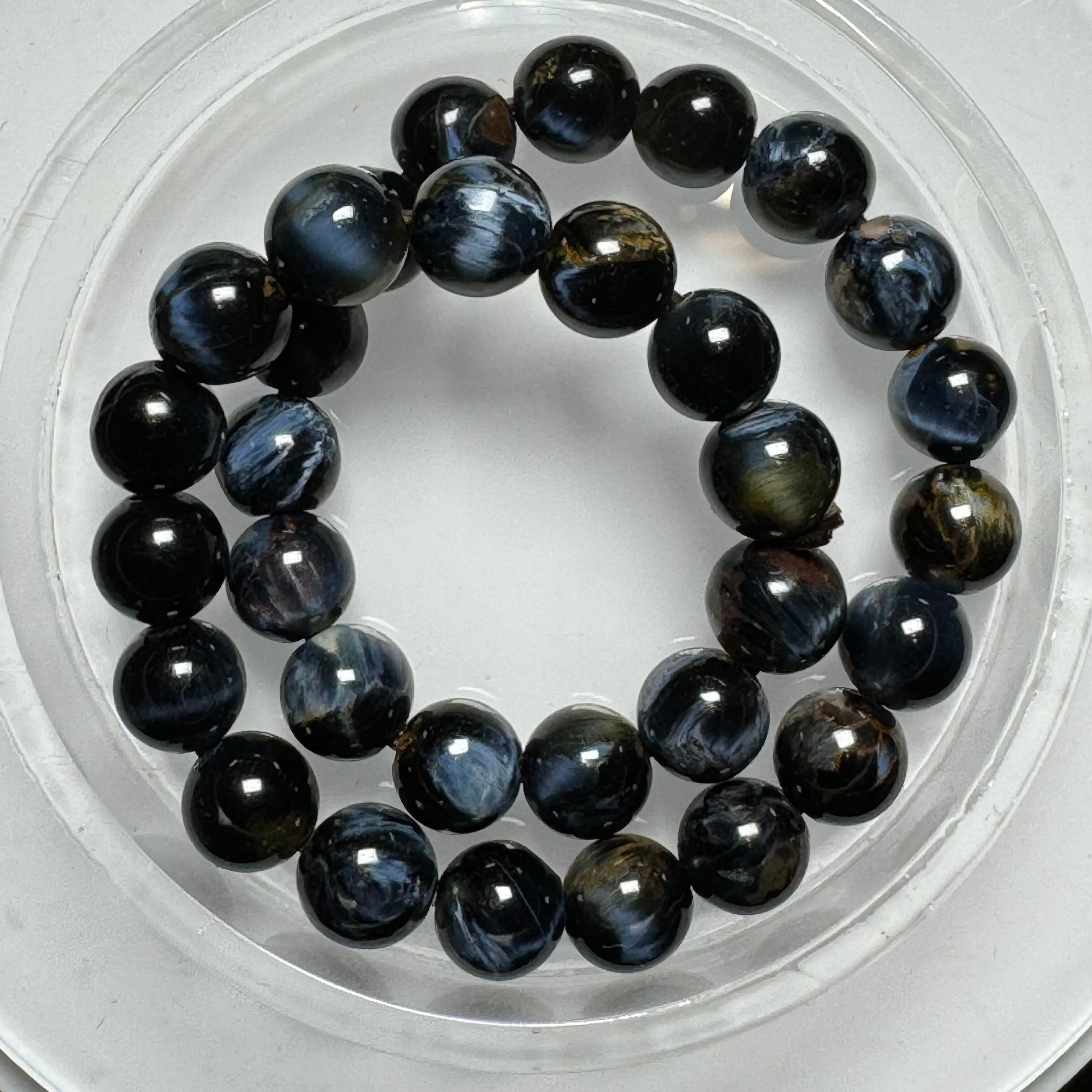 タイガーアイのように層状になっているわけではなく、他の成分と混ざって渦を巻いている中に、ギラギラ輝くシャトヤンシー効果が見られ、神秘的に見えます。