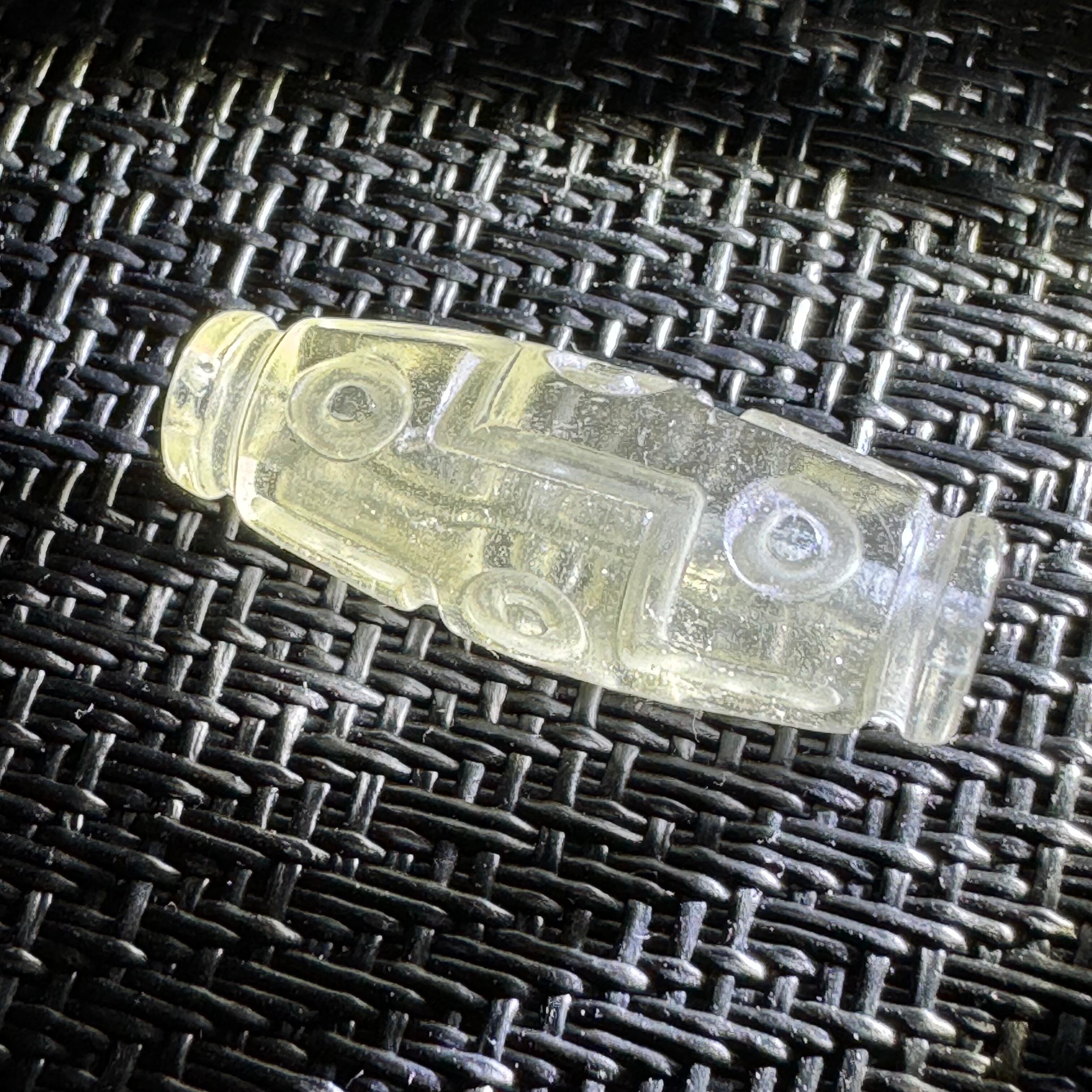 ぷくぷくとした気泡や白い小さな点(クリストバイライト)が見られ、表面は滑らかでざらつきがありません。