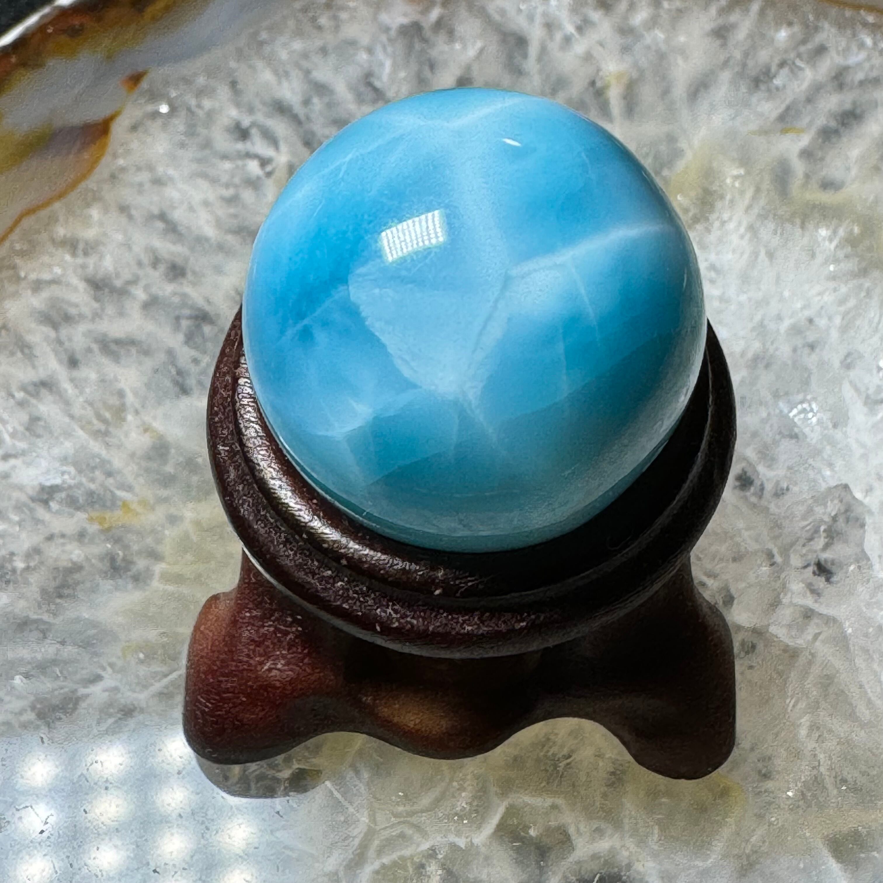 世界三大ヒーリングストーンの1つの高品質のラリマーの丸玉です。