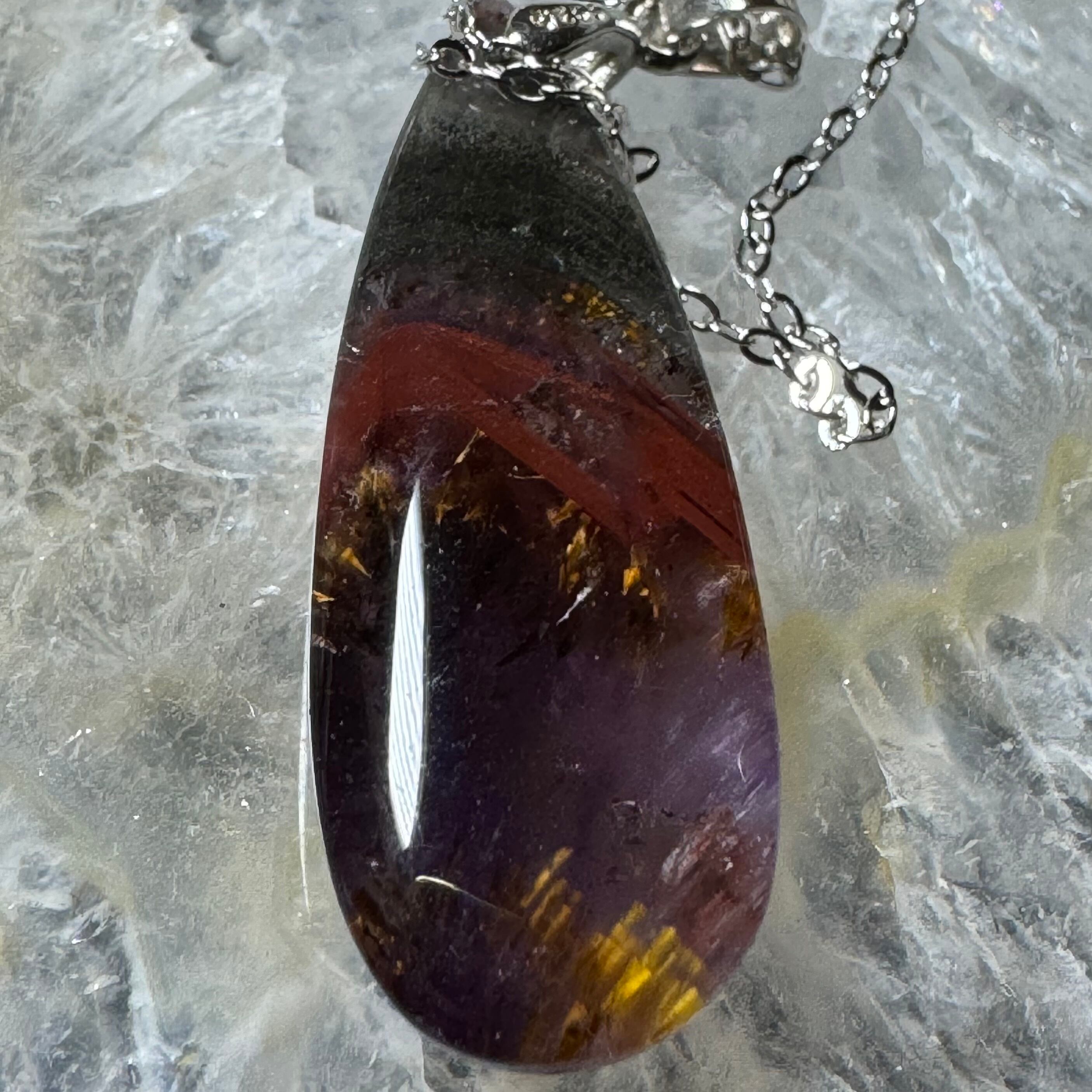 母体となっているアメジスト(紫水晶)に23種の鉱物が少量ずつ混じり合っている天然石です。