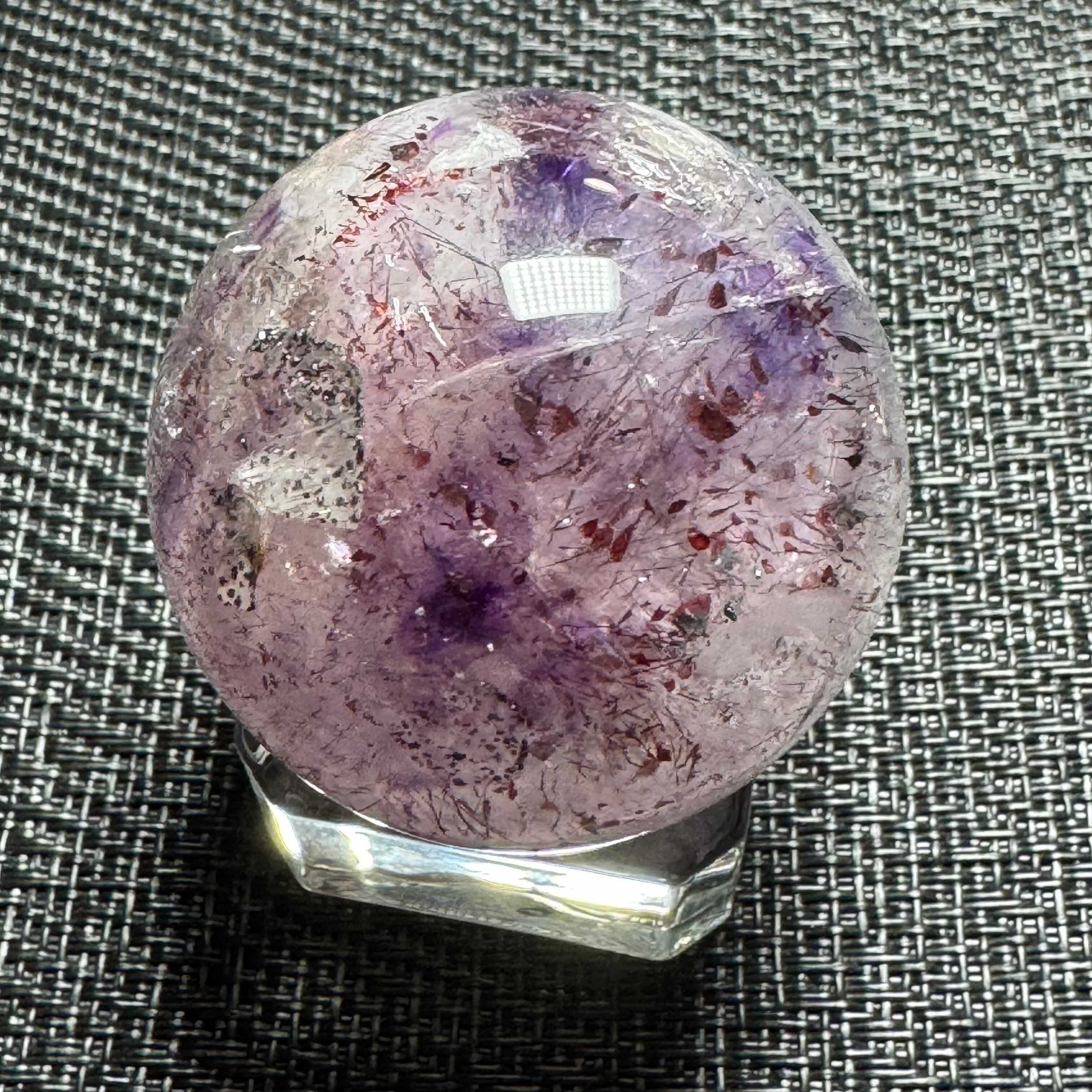 水晶、アメジスト、カコクセナイト、ゲーサイト、スモーキークォーツ、ルチル、レビドクロサイトの7つの鉱物で構成された強いパワーを持つとされています。