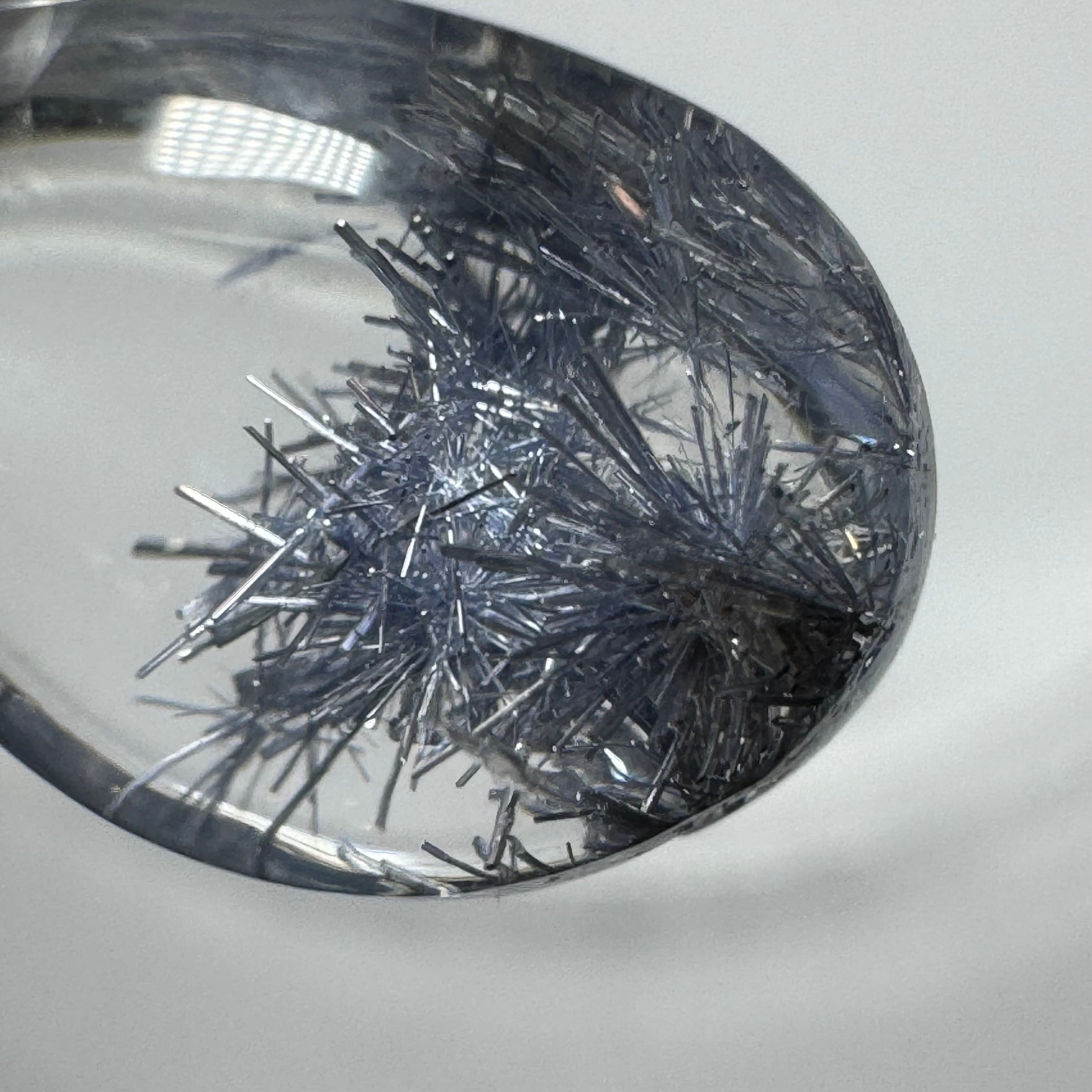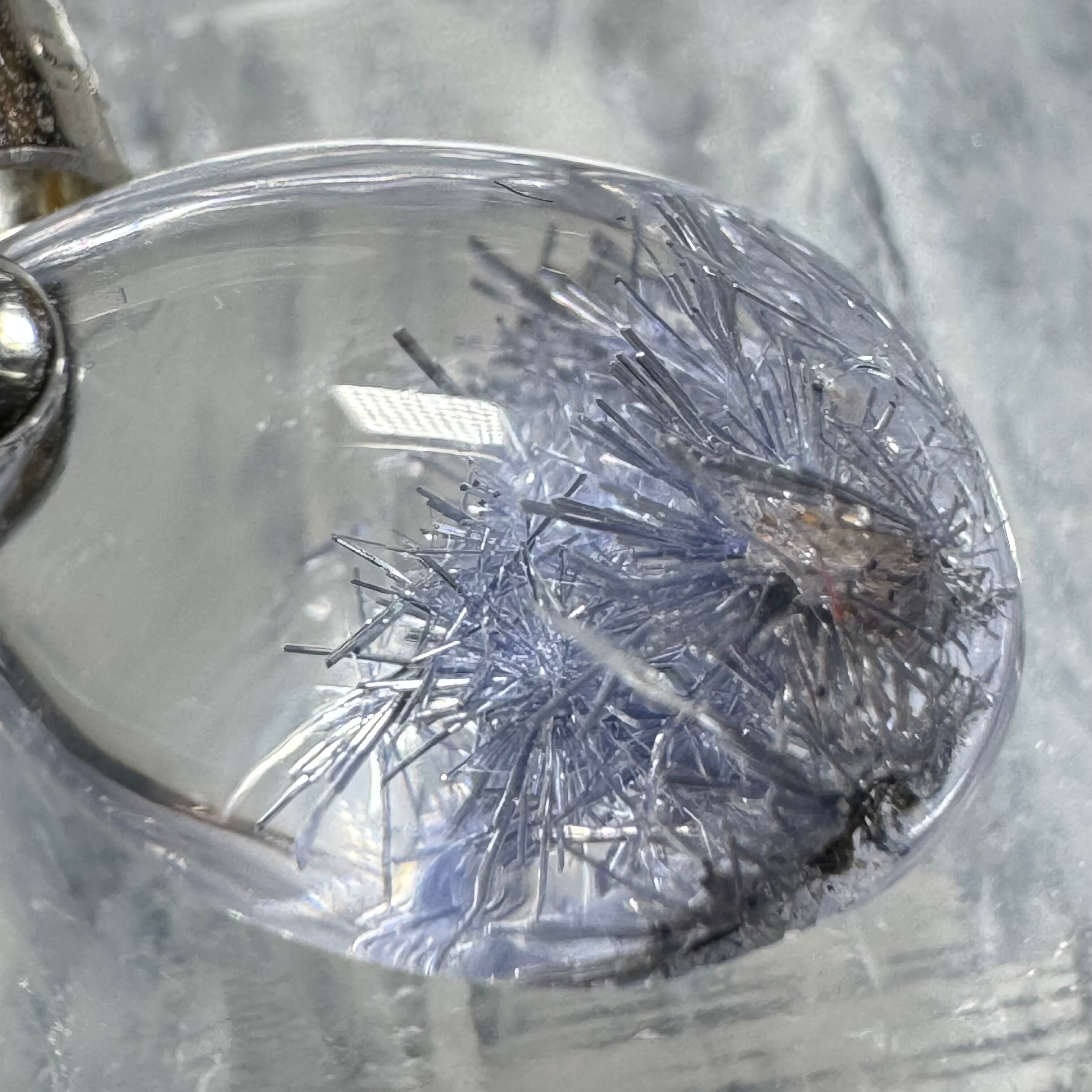 この天然石は、神秘的な青い内包物が入っていて、初めて見たとき、綺麗さに驚きました。